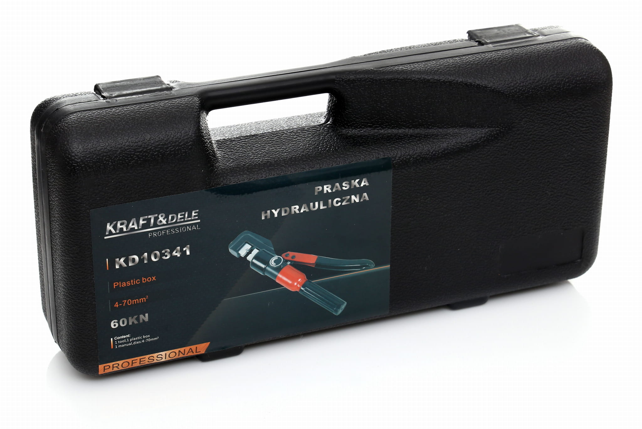 Ręczna praska z siłownikiem hydraulicznym przeznaczona do zaciskania tulejek i końcówek kablowych na przewodach miedzianych oraz aluminiowych, a także do zaciskania lin. Narzędzie wykonane ze stali narzędziowej kutej, wyposażone w komplet 8 matryc dzielonych obejmujących przekroje od 4 do 70 mm².