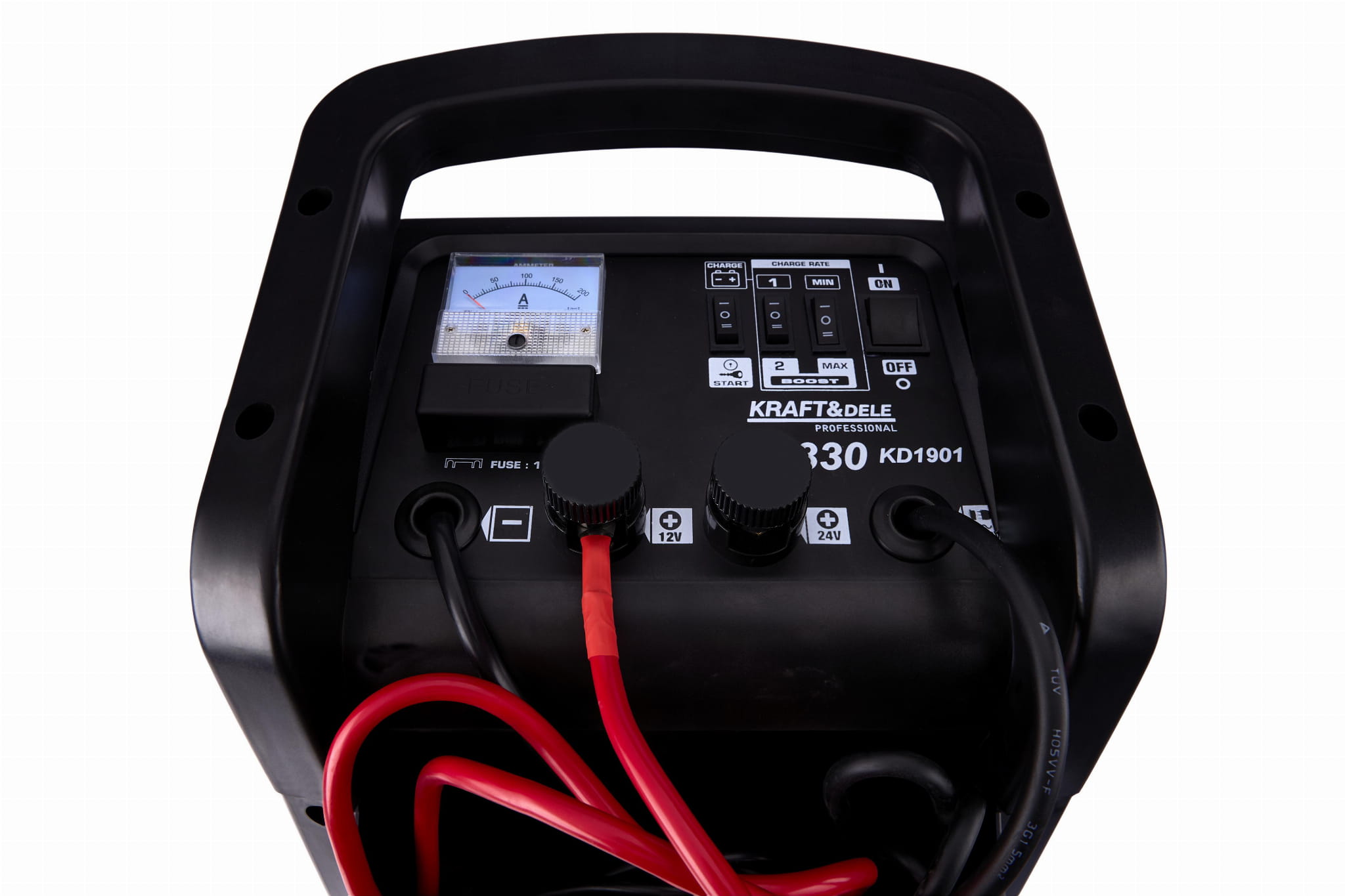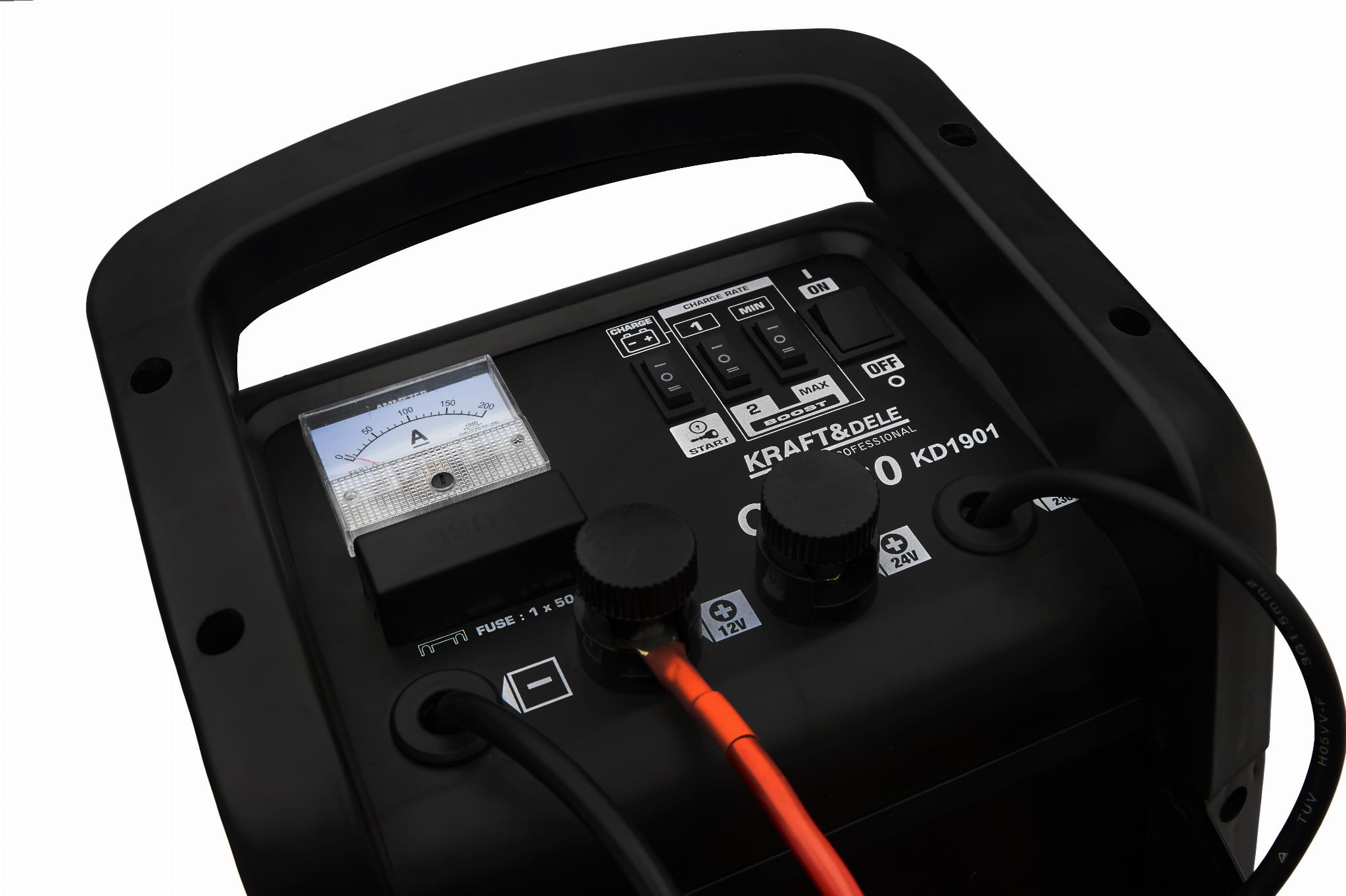 KD1901 to sieciowy prostownik akumulatorowy z wbudowaną funkcją rozruchu awaryjnego, przeznaczony do obsługi akumulatorów 12 V i 24 V o pojemności od 20 Ah do 350 Ah. Urządzenie pracuje na napięciu jednofazowym 230 V i oferuje dwa tryby ładowania — szybki oraz wolny — co pozwala dostosować proces do stanu i typu akumulatora.
