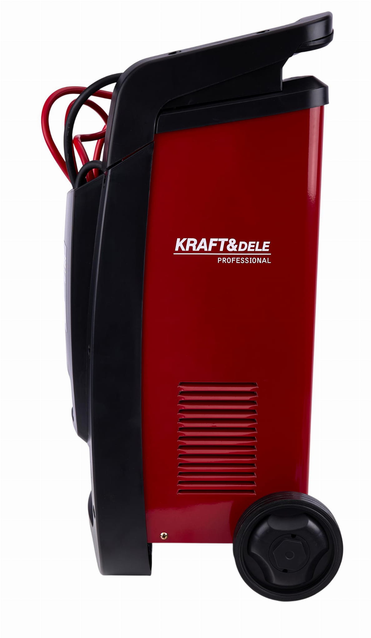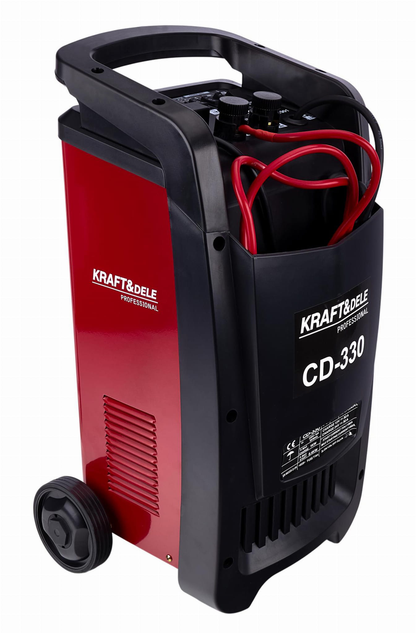 Urządzenie wyposażono w bezpiecznik płytkowy i topikowy, chroniące zarówno prostownik, jak i akumulator przed skutkami zwarcia lub przeciążenia. Uchwyt transportowy i kółka ułatwiają przemieszczanie urządzenia ważącego około 13 kg.