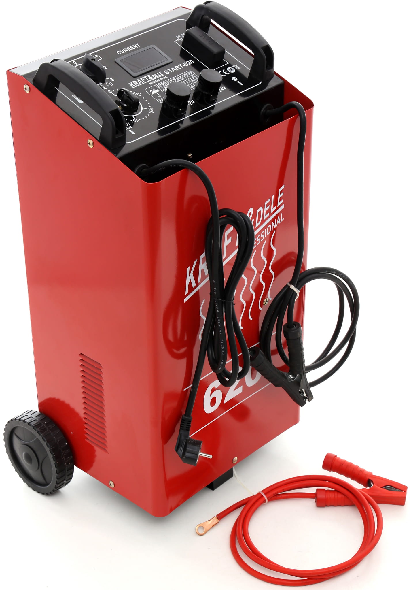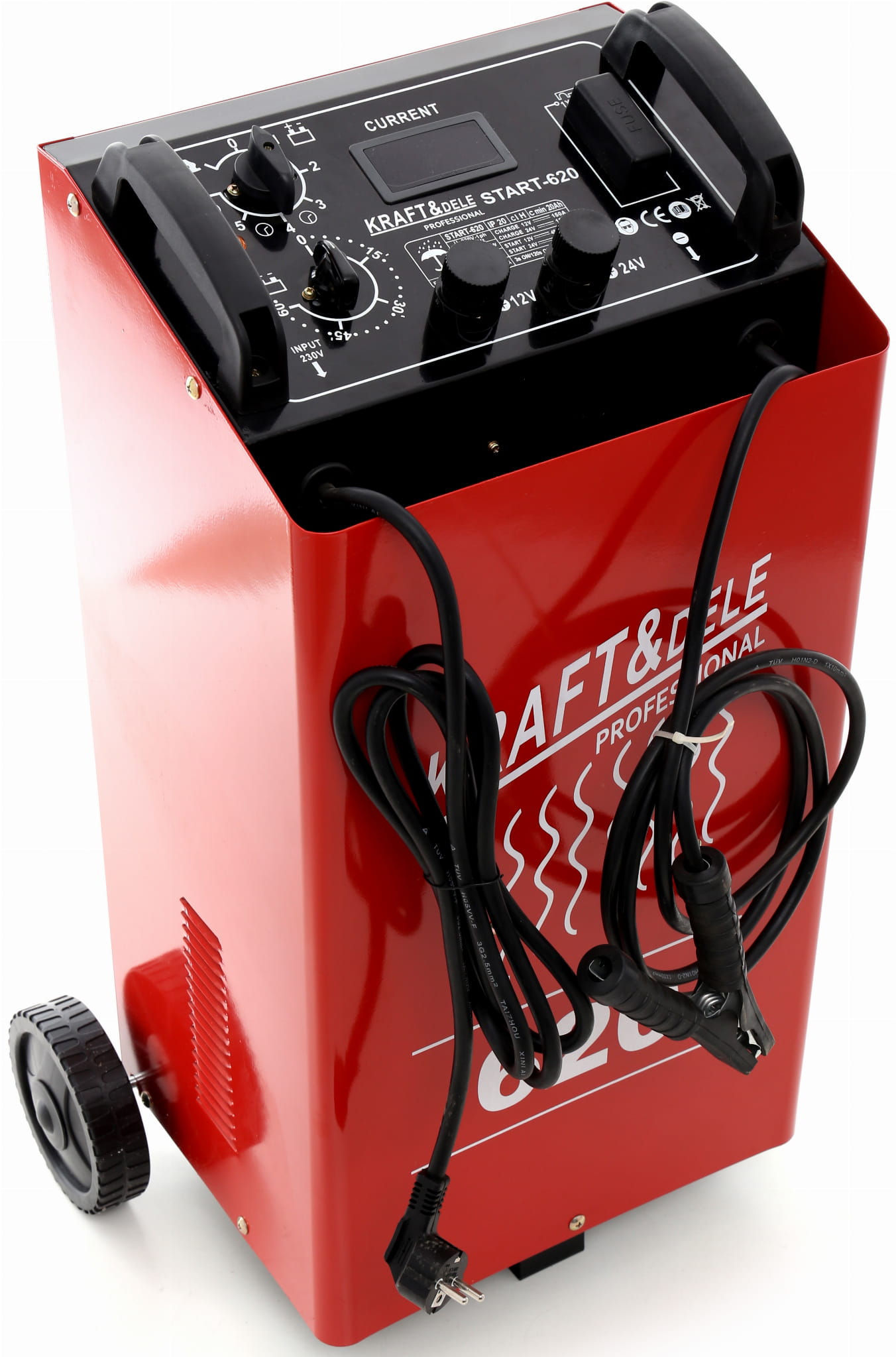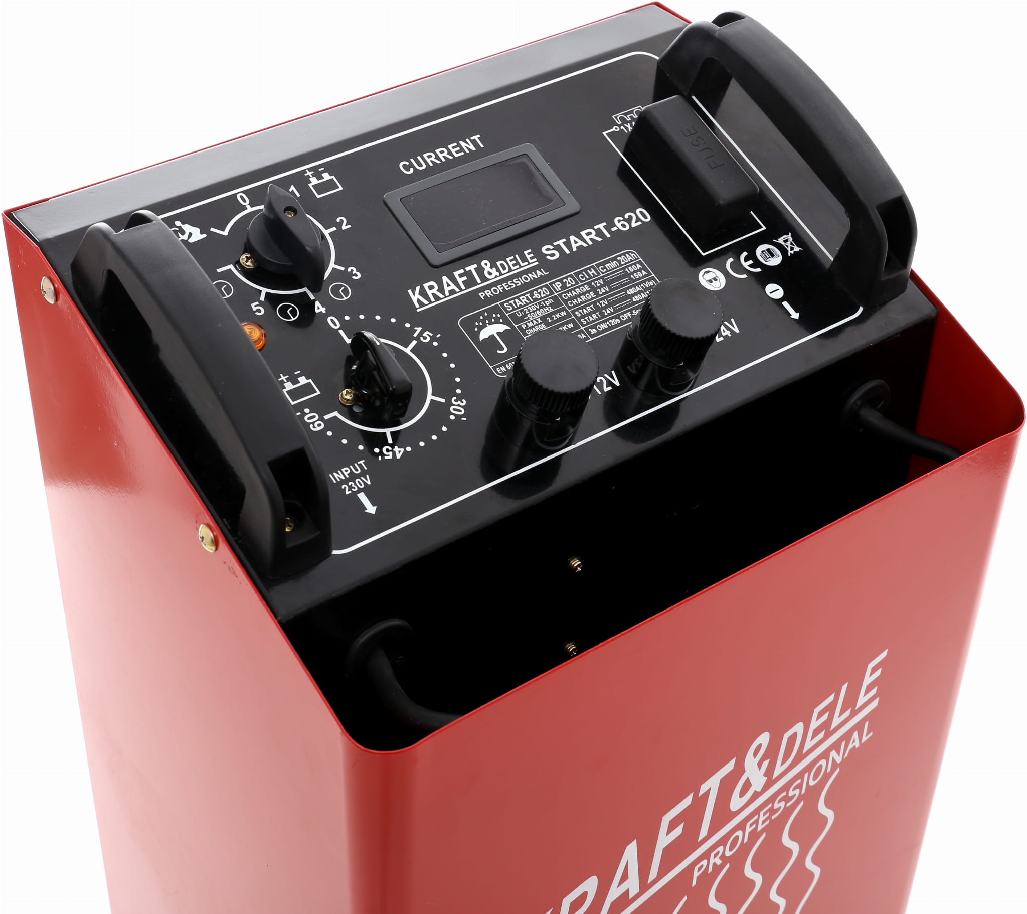 KD1916 to stacjonarny prostownik warsztatowy z wbudowaną funkcją rozruchu awaryjnego, przeznaczony do ładowania akumulatorów kwasowo-ołowiowych o pojemności 20–900 Ah oraz wspomagania rozruchu pojazdów z instalacją 12 V i 24 V. Metalowa obudowa, wyświetlacz LCD i układ kółek transportowych predestynują go do pracy w warunkach garażowych i serwisowych.