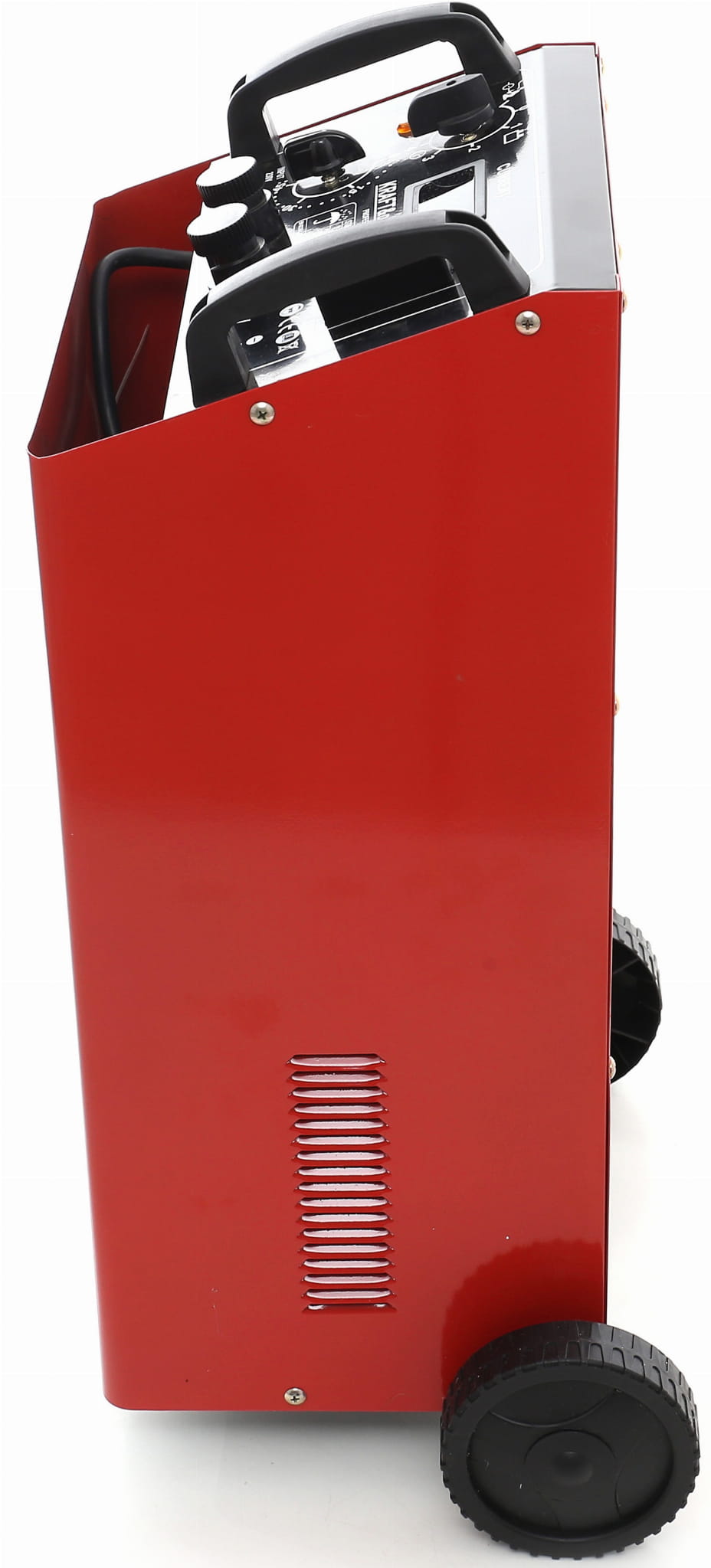 Prąd rozruchowy 480 A dostępny zarówno dla instalacji 12 V, jak i 24 V pozwala na wspomaganie rozruchu silników benzynowych i diesla — w samochodach osobowych, dostawczych, a także maszynach roboczych. To kluczowy parametr przy wyborze urządzenia do obsługi pojazdów ciężkich lub z silnikami o dużej pojemności skokowej.