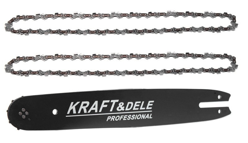Kompletny zestaw do pilarki łańcuchowej: prowadnica i dwa dopasowane łańcuchy, gotowe do pracy w cięciu drewna. Prowadnica 16"/40 cm KD10152 została wykonana z utwardzonego stopu stali, a łańcuchy zaprojektowano pod wysoką odporność na ścieranie i ograniczenie rozciągania.