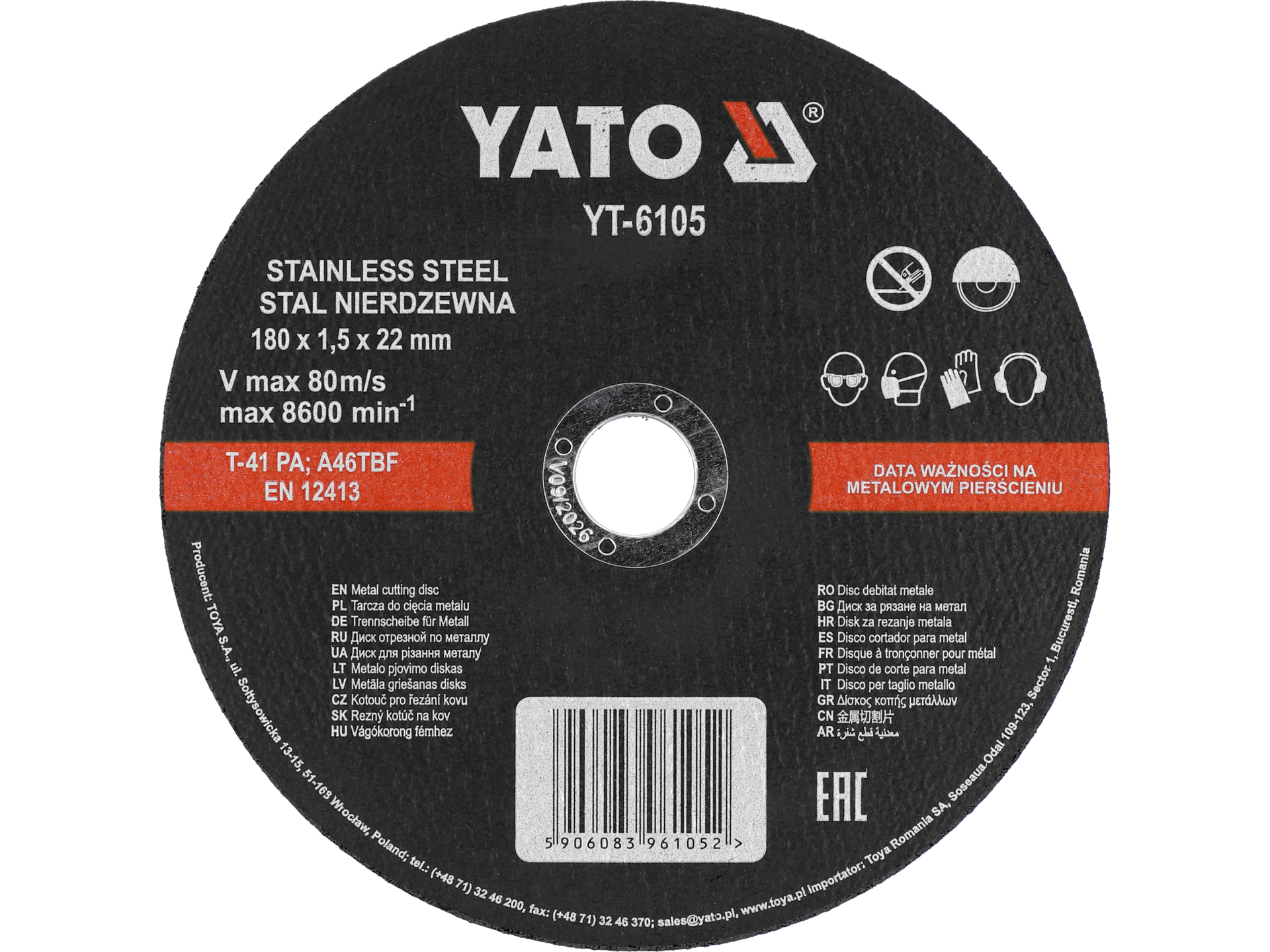 Tarcza do cięcia stali nierdzewnej 180x1,5x22 mm YT-6105 YATO