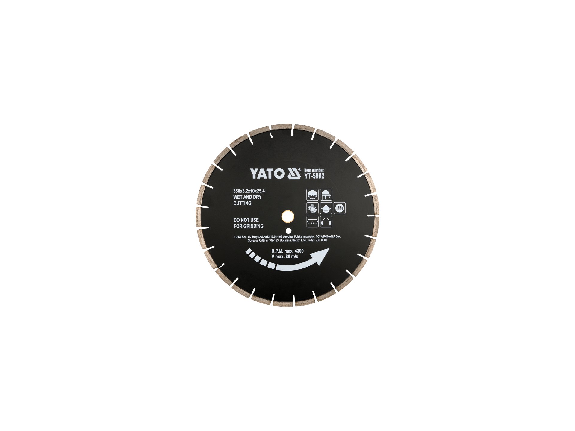 Tarcza diamentowa do betonu 350x25.4 mm YT-5954 YATO