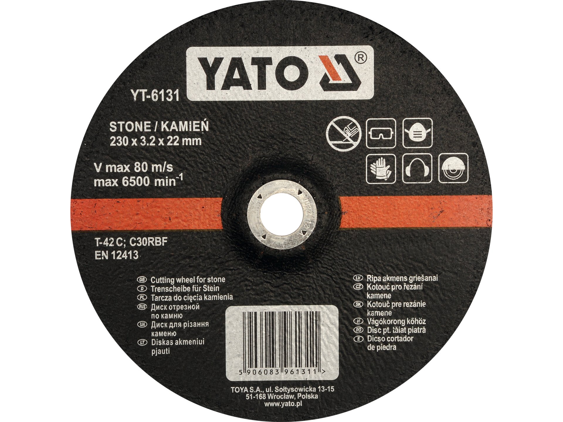 Tarcza do cięcia kamienia, wypukła 230x3.2x22 mm YT-6131 YATO