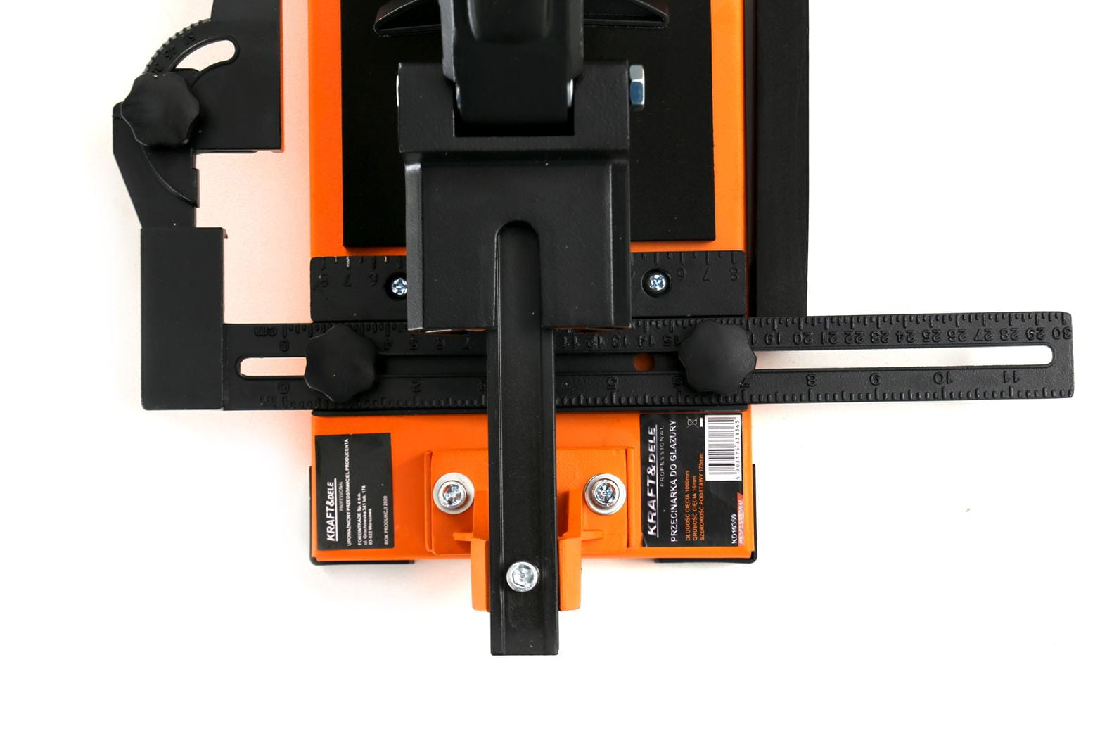 Kątownik przymocowany do podstawy umożliwia ustawienie płytki pod dowolnym kątem względem linii cięcia. Pozwala to na wykonywanie cięć ukośnych — np. przy wykańczaniu naroży, obramowań lub dopasowywaniu płytek do nieregularnych kształtów pomieszczenia.