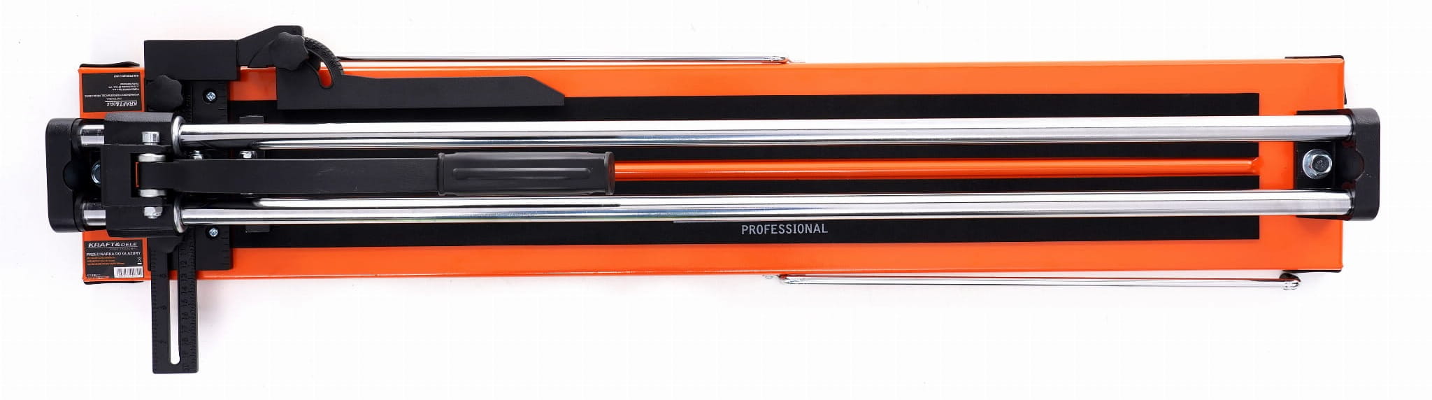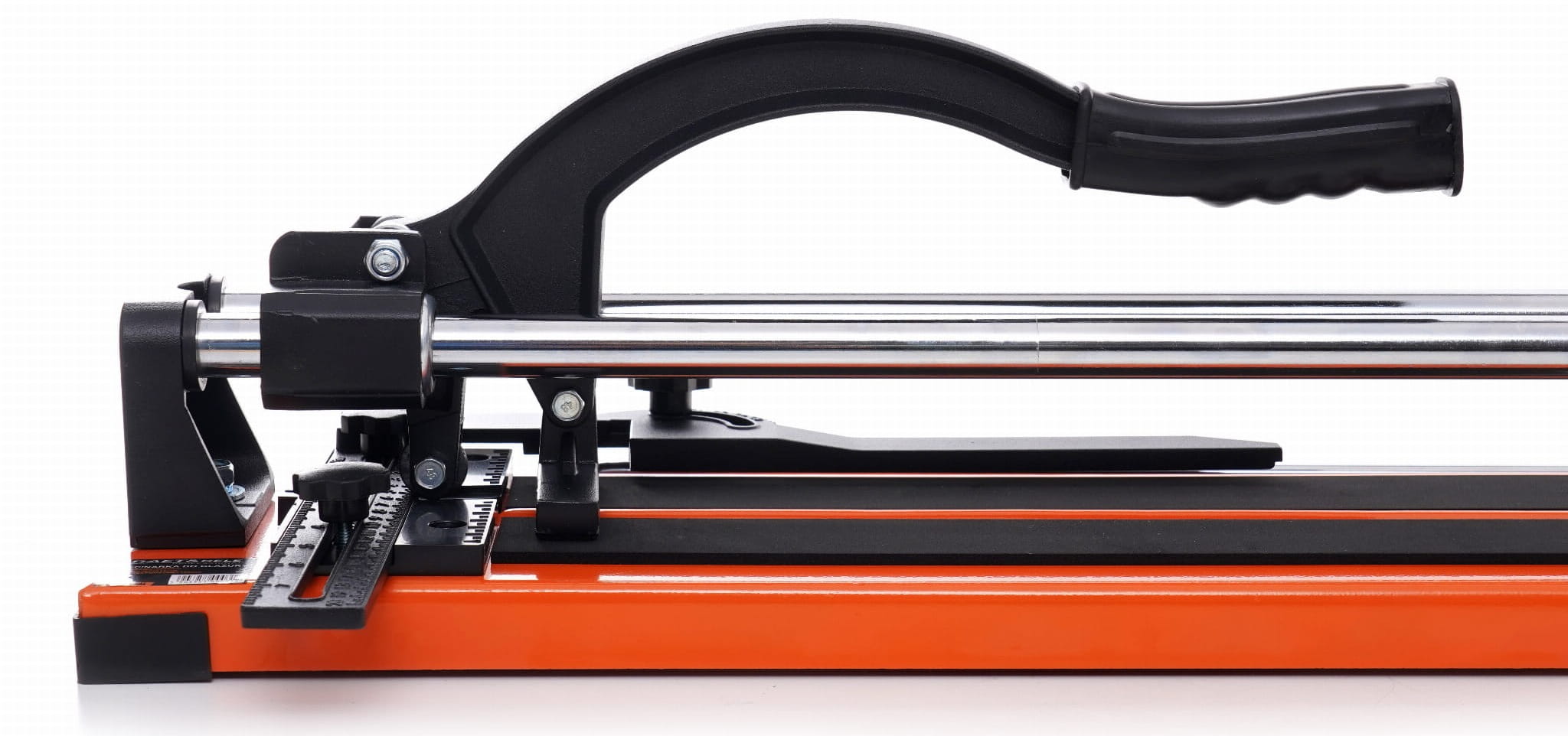 Ręczna przecinarka do płytek ceramicznych, gresu i terakoty z maksymalną długością cięcia 1200 mm (48"). Urządzenie pracuje bez zasilania elektrycznego — cięcie odbywa się poprzez nacinanie i łamanie płytki, co eliminuje pył i hałas charakterystyczny dla szlifierek kątowych czy pił tarczowych.