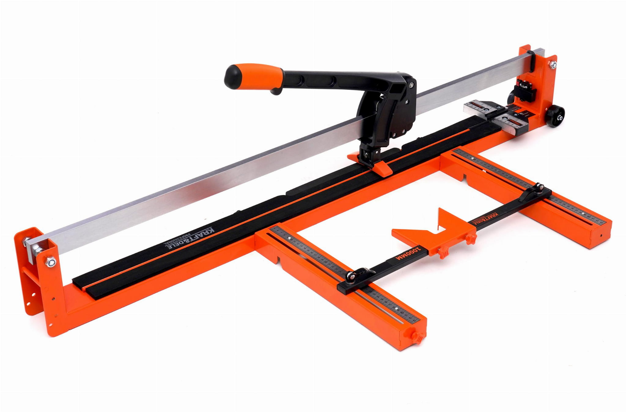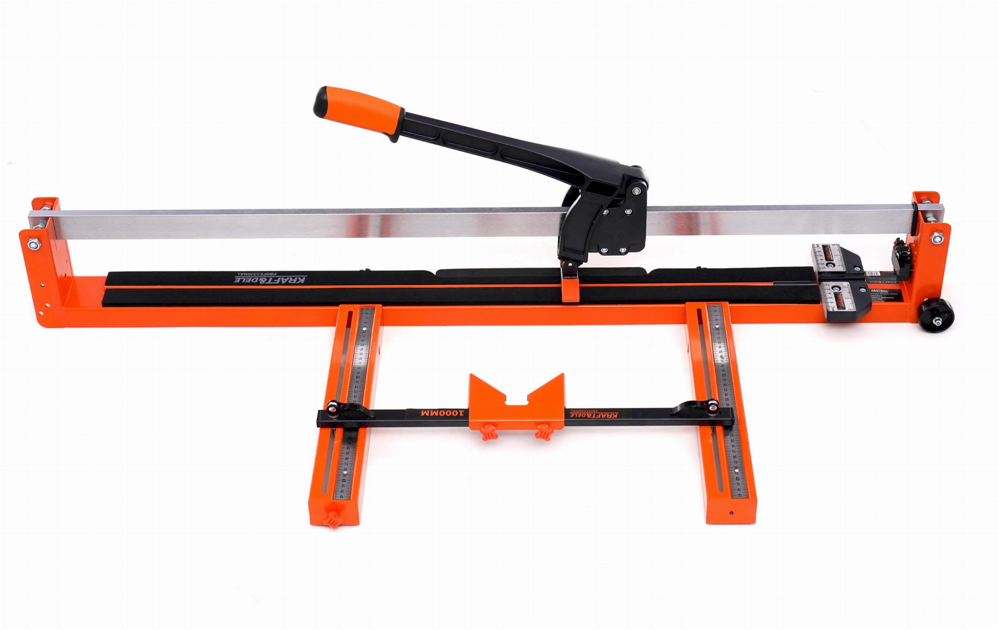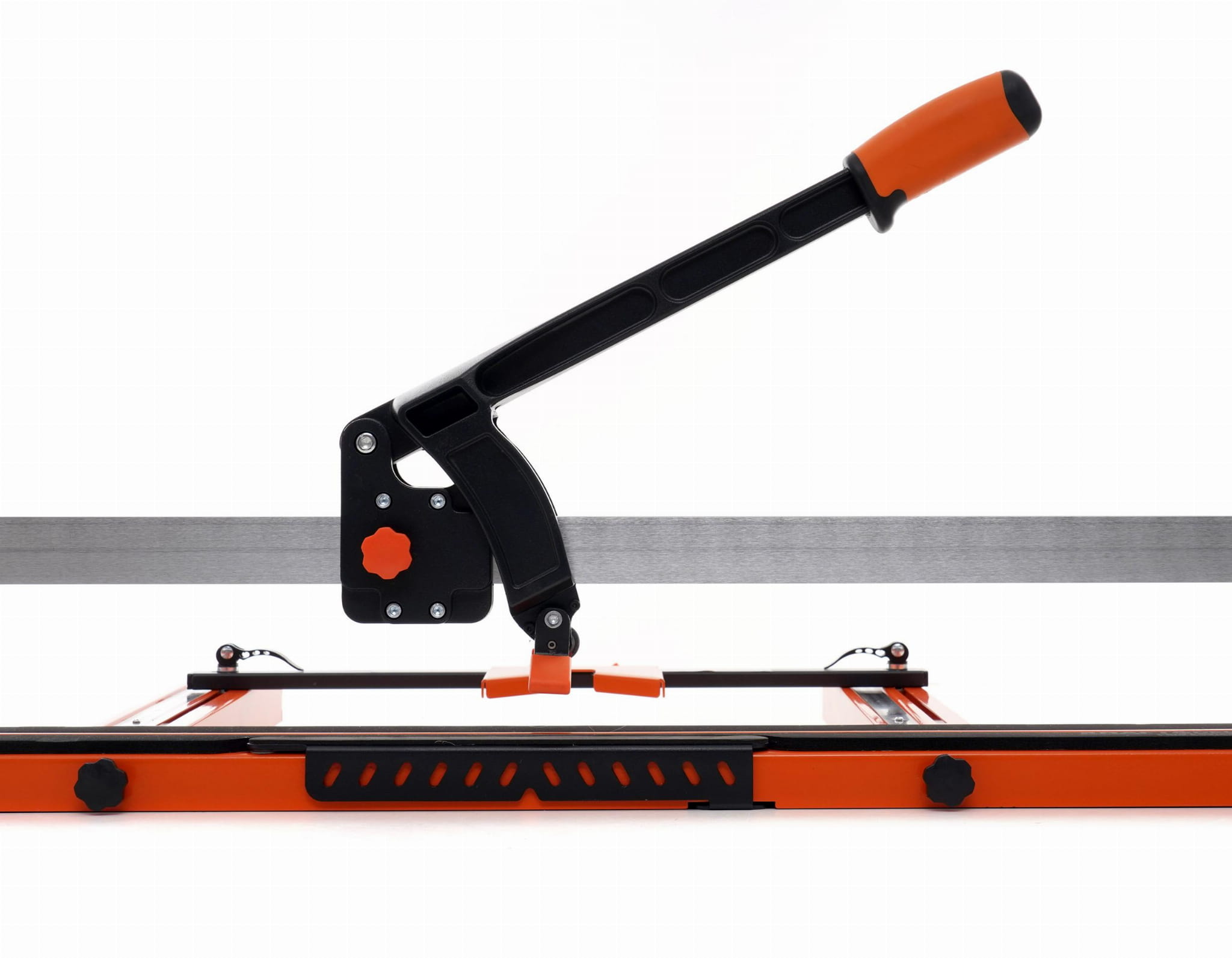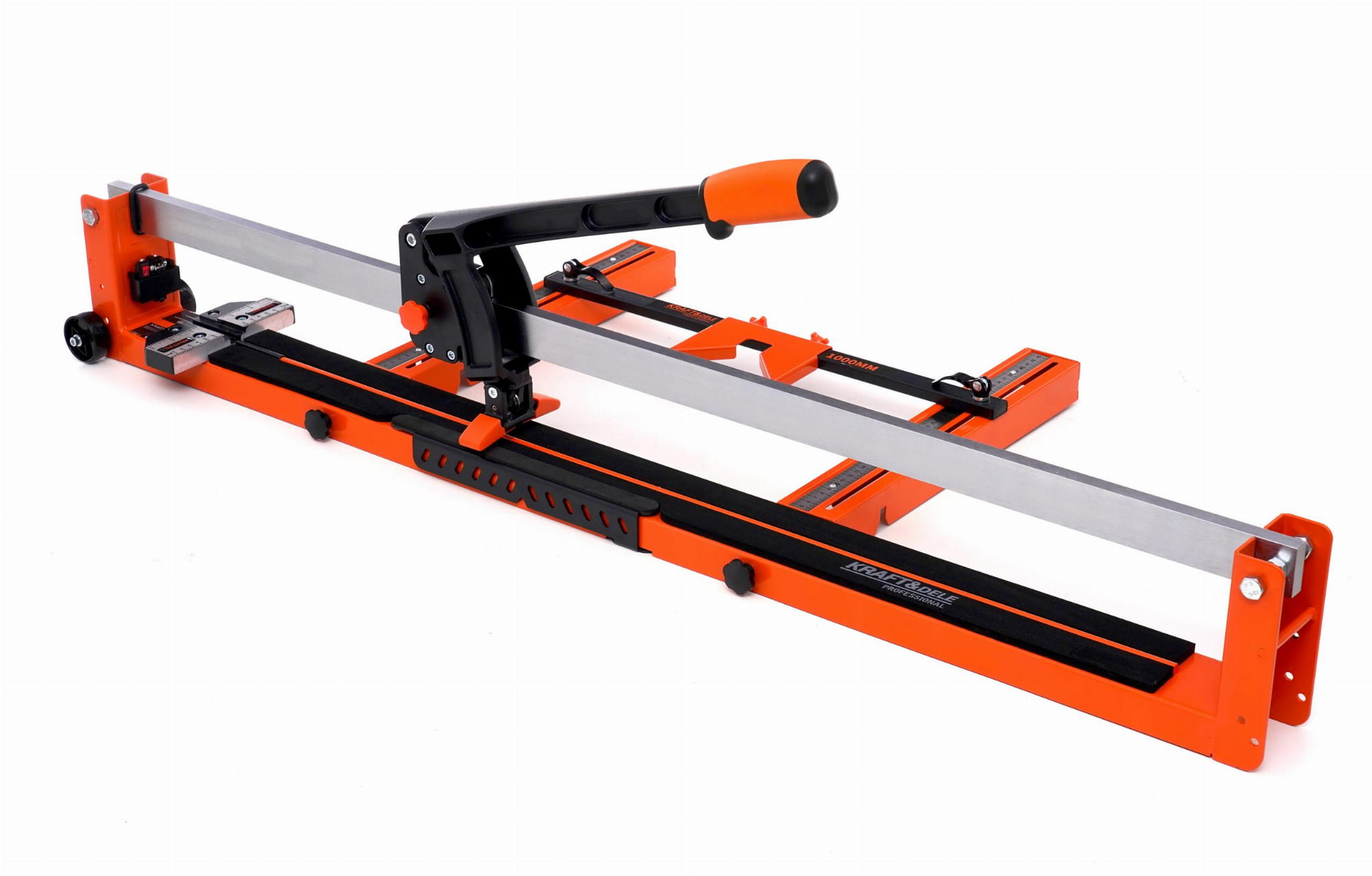 Ręczna przecinarka do glazury z maksymalnym zasięgiem cięcia 1200 mm, przeznaczona do obróbki ceramiki, porcelany, gresu i kamienia naturalnego o grubości od 4 do 14 mm. Urządzenie pracuje bez zasilania elektrycznego — cięcie odbywa się metodą nacinania i łamania, co eliminuje pylenie i hałas typowy dla szlifierek kątowych.