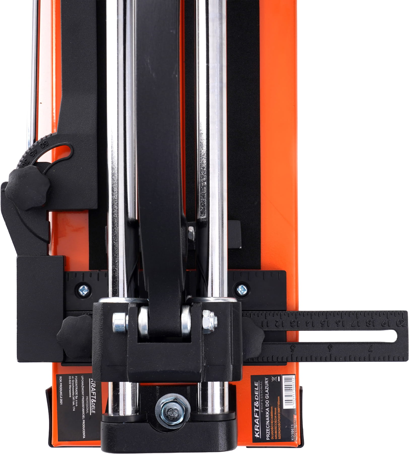 Kluczowym parametrem jest długość cięcia — powinna być co najmniej równa przekątnej największego formatu płytki, jaki planuje się ciąć. Dla płytek 60x60 cm przekątna wynosi ok. 848 mm, dlatego model KD10671 z długością cięcia 800 mm jest przeznaczony do formatów do ok. 56x56 cm przy cięciu prostym lub mniejszych przy cięciu ukośnym. Grubość płytki, jaką można ciąć, zależy od głębokości nacinania noża — przed zakupem warto sprawdzić, czy planowany materiał (np. gres techniczny, mozaika, terakota) mieści się w możliwościach narzędzia.