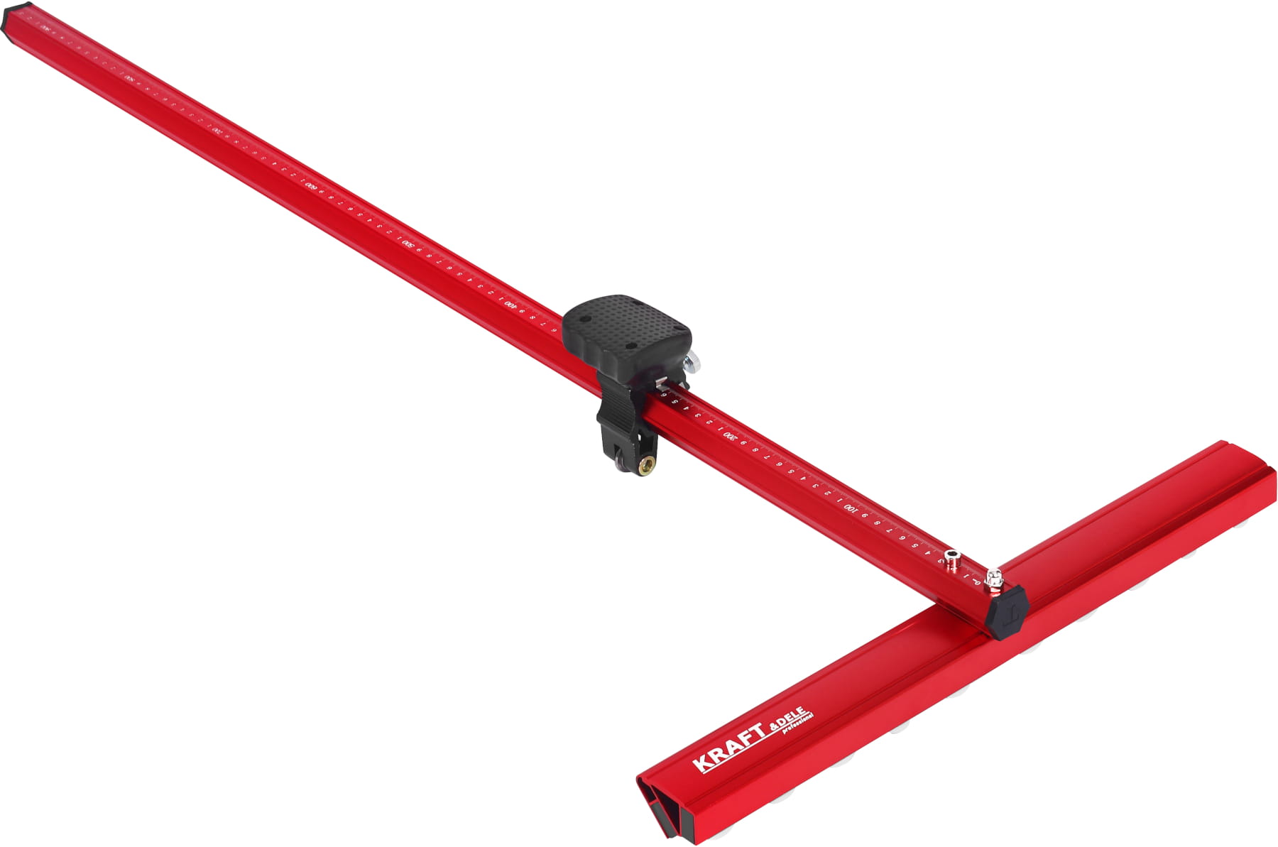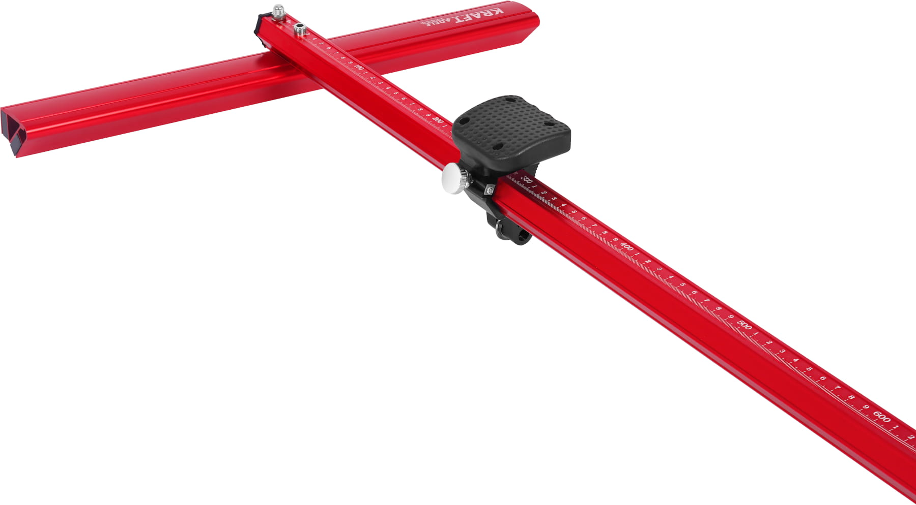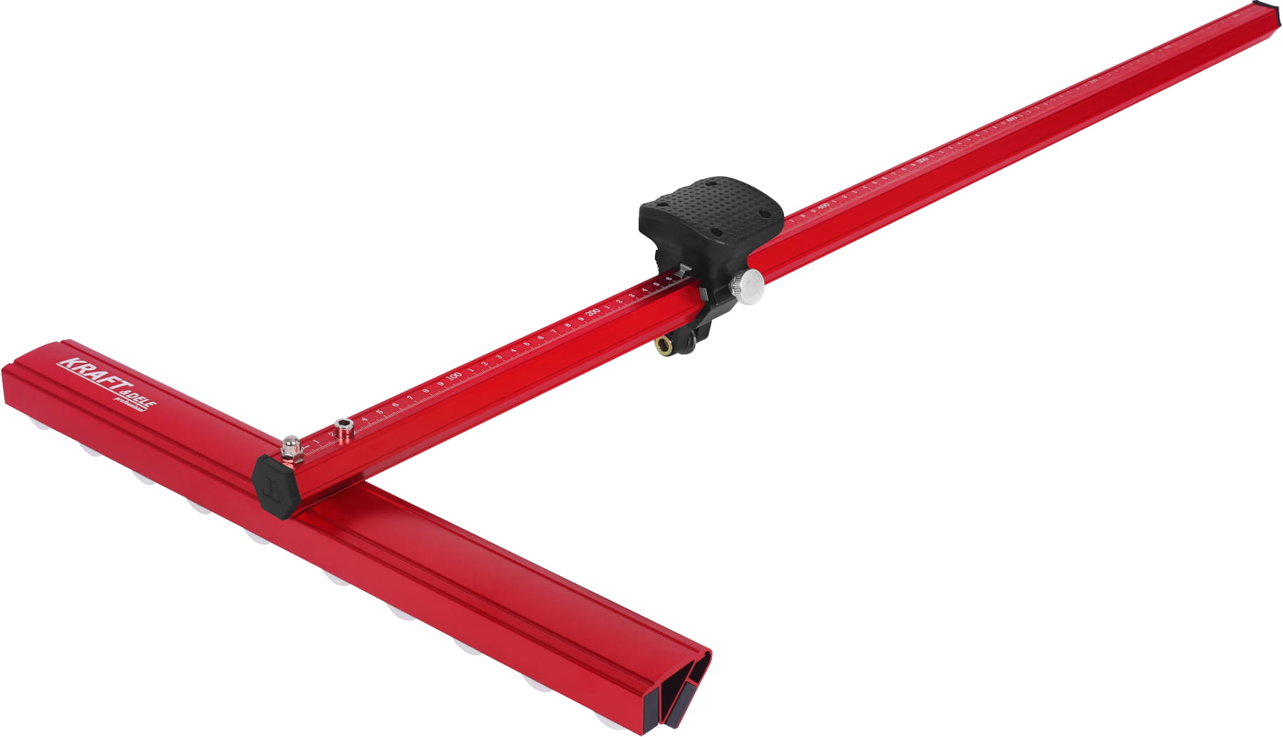 Konstrukcja typu T z wbudowaną prowadnicą eliminuje potrzebę stosowania zewnętrznej szyny prowadzącej. Płytka układana jest bezpośrednio na stole roboczym urządzenia, co przyspiesza ustawianie i skraca czas pracy.