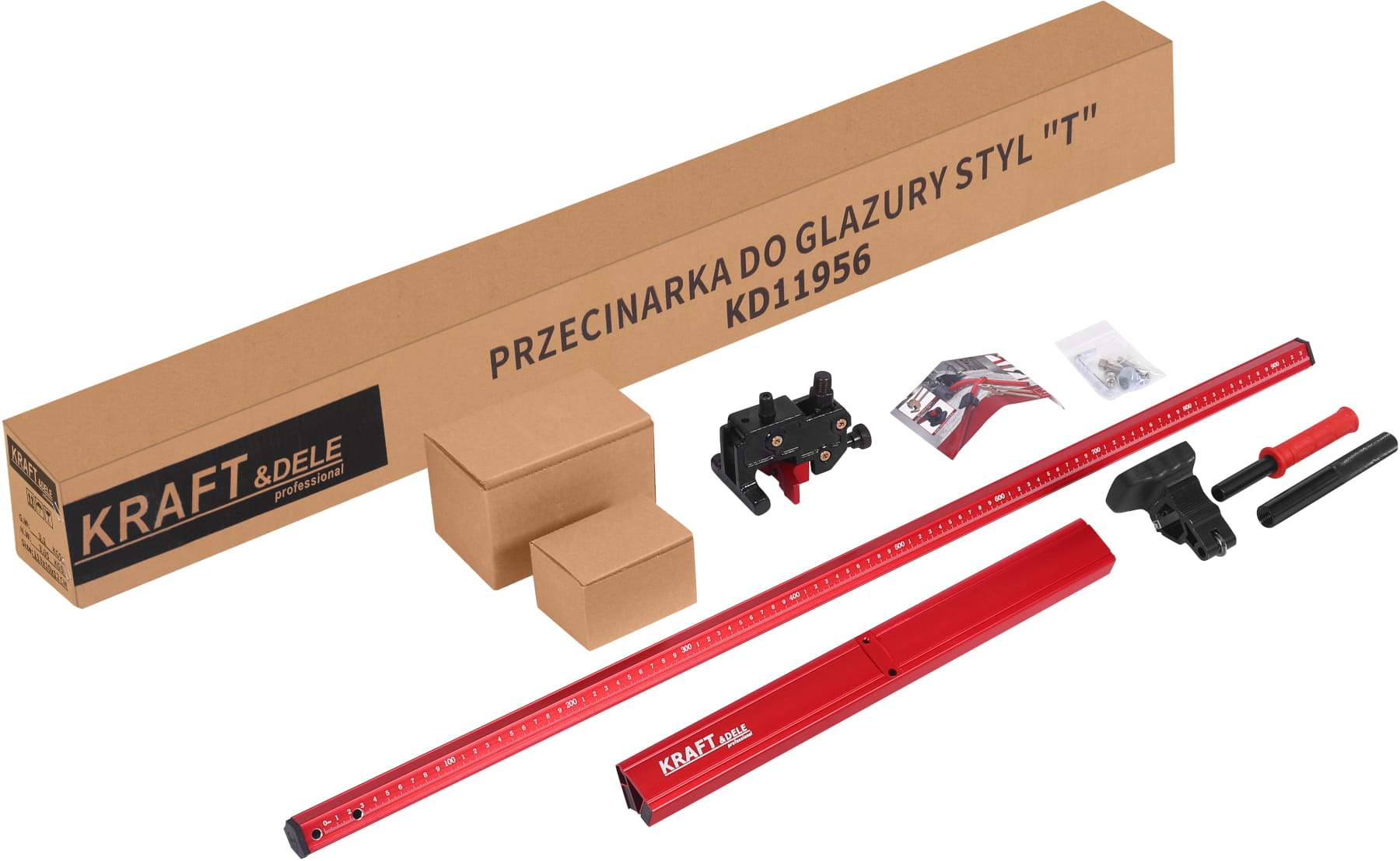 Przy wyborze przecinarki ręcznej kluczowym parametrem jest długość cięcia — powinna ona być równa lub większa niż dłuższy bok ciętej płytki. Dla płytek 60x60 cm wystarczy przecinarka 60 cm, natomiast do formatów 60x90 cm lub 90x90 cm niezbędna jest długość robocza co najmniej 90 cm, którą zapewnia model KD11956. Warto też uwzględnić twardość materiału — gres porcelanowy wymaga ostrzejszego kółka tnącego i większej siły nacisku niż standardowa ceramika.