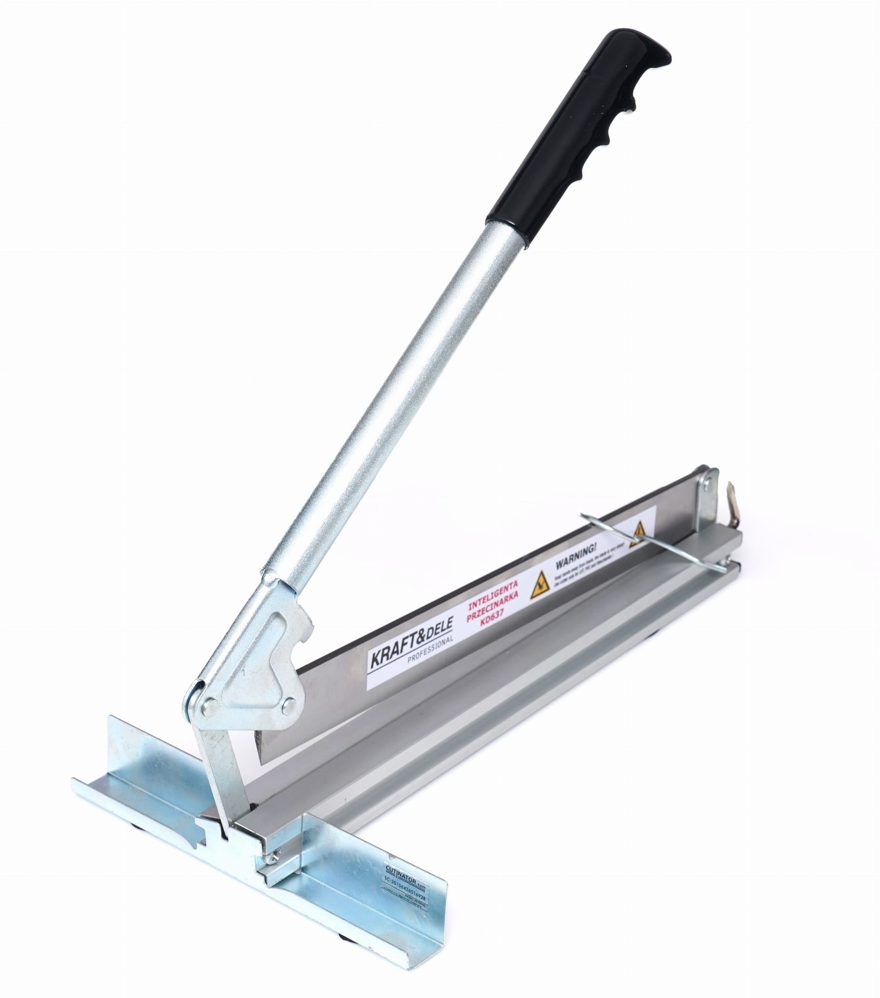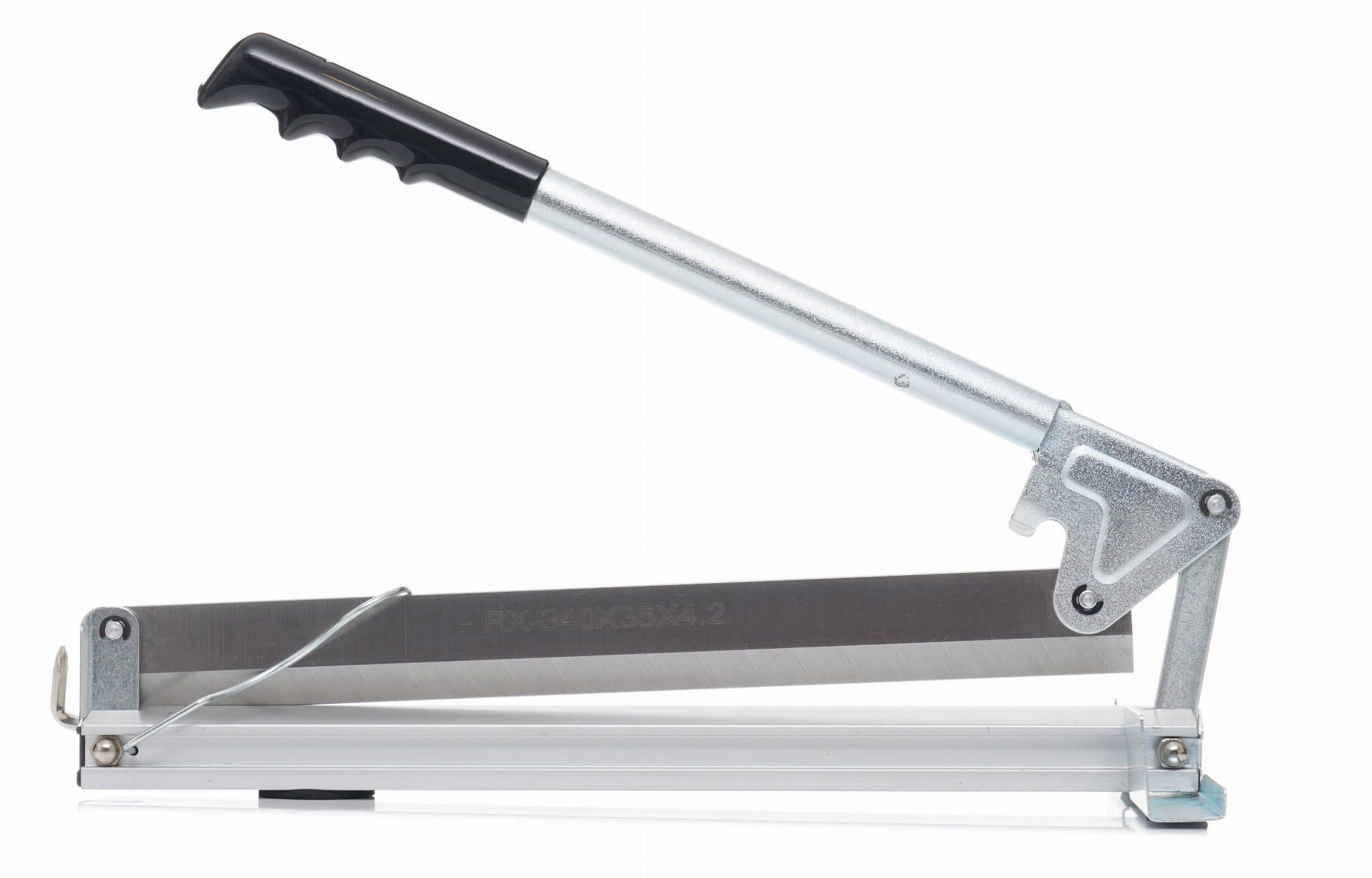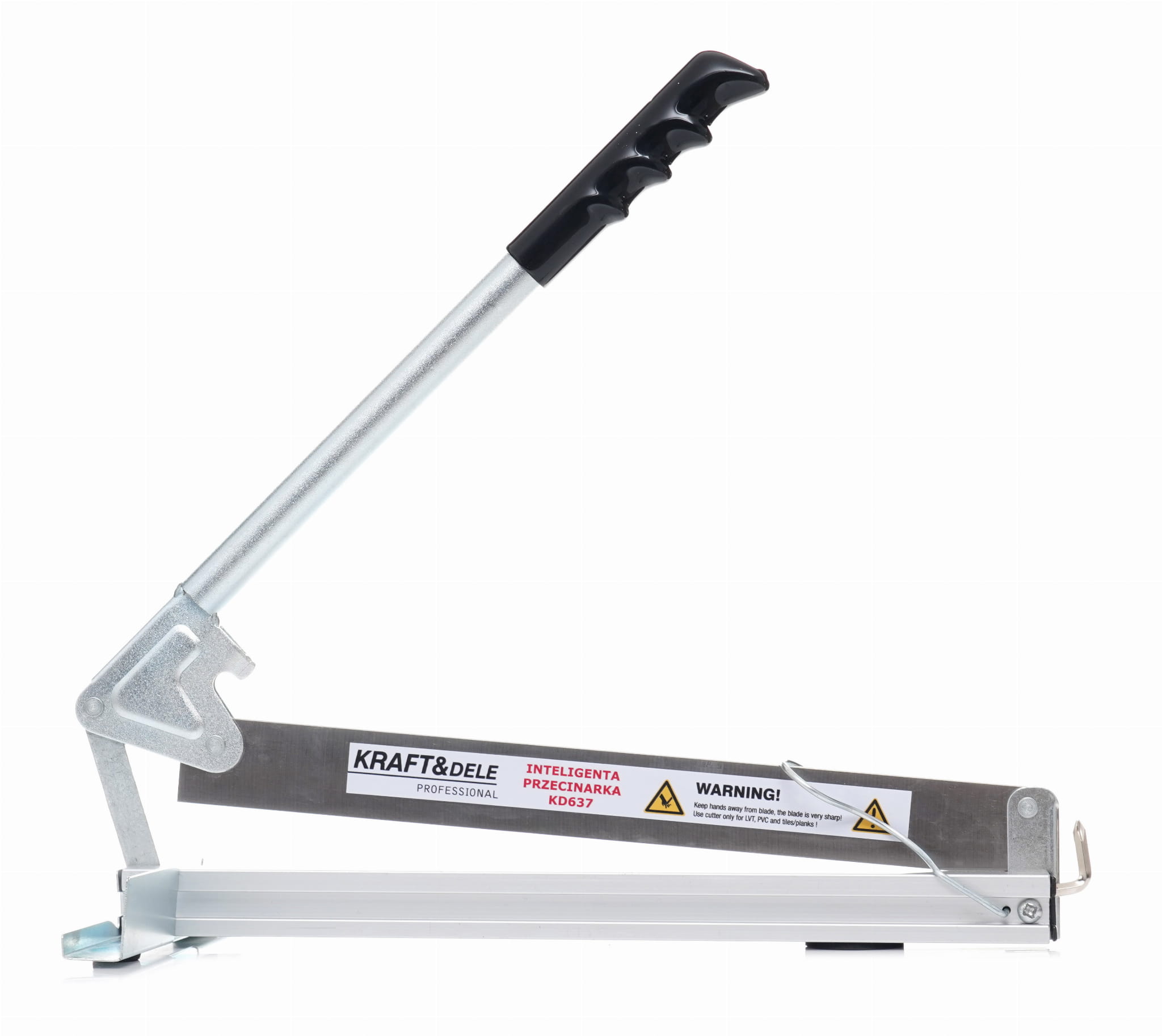 Ręczna gilotyna do cięcia paneli laminowanych, MDF, PCV, winylowych i innych materiałów podłogowych oraz elewacyjnych. Pracuje bez zasilania elektrycznego, nie wytwarza pyłu i umożliwia precyzyjne cięcia pod kątem 45° oraz 90°.
