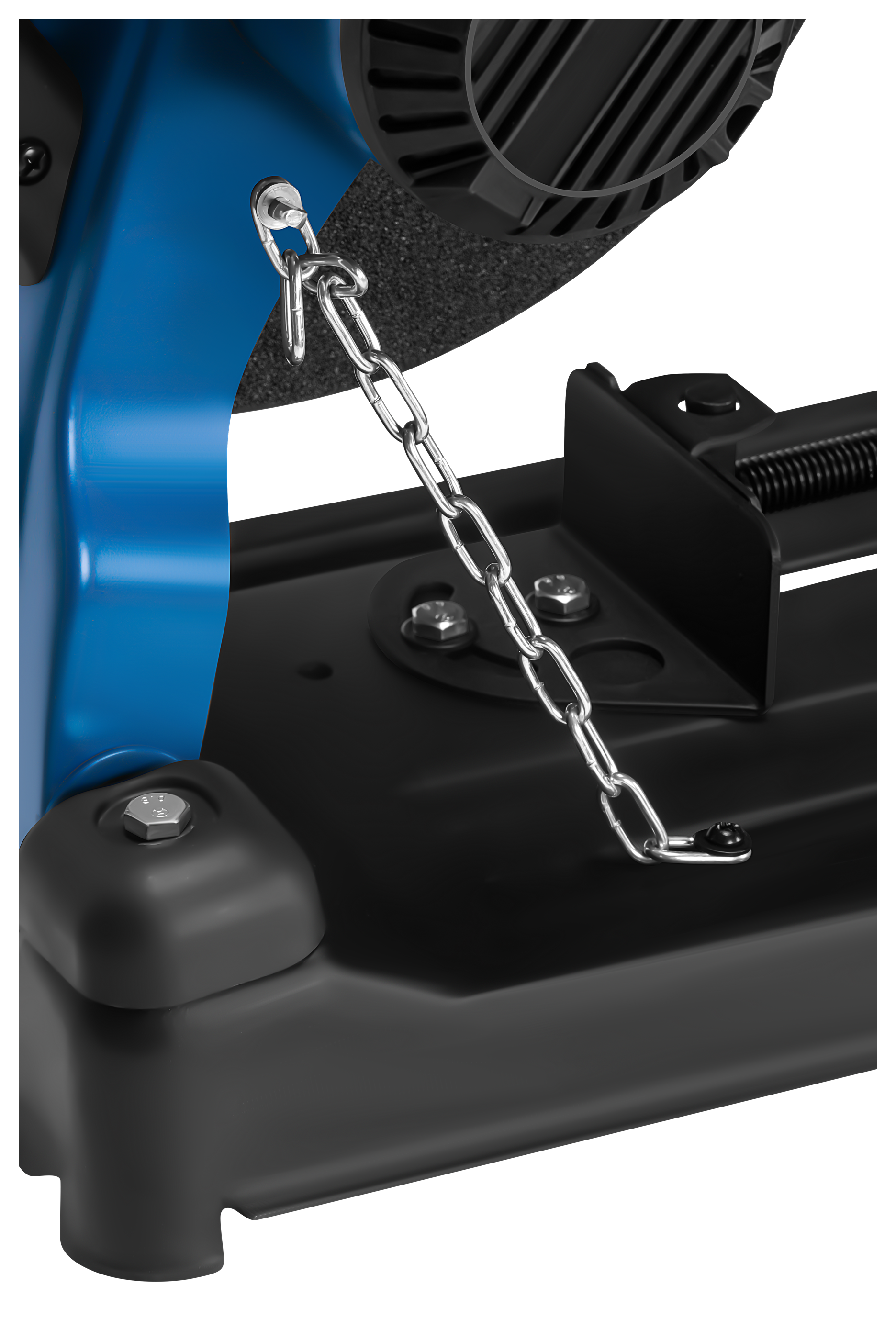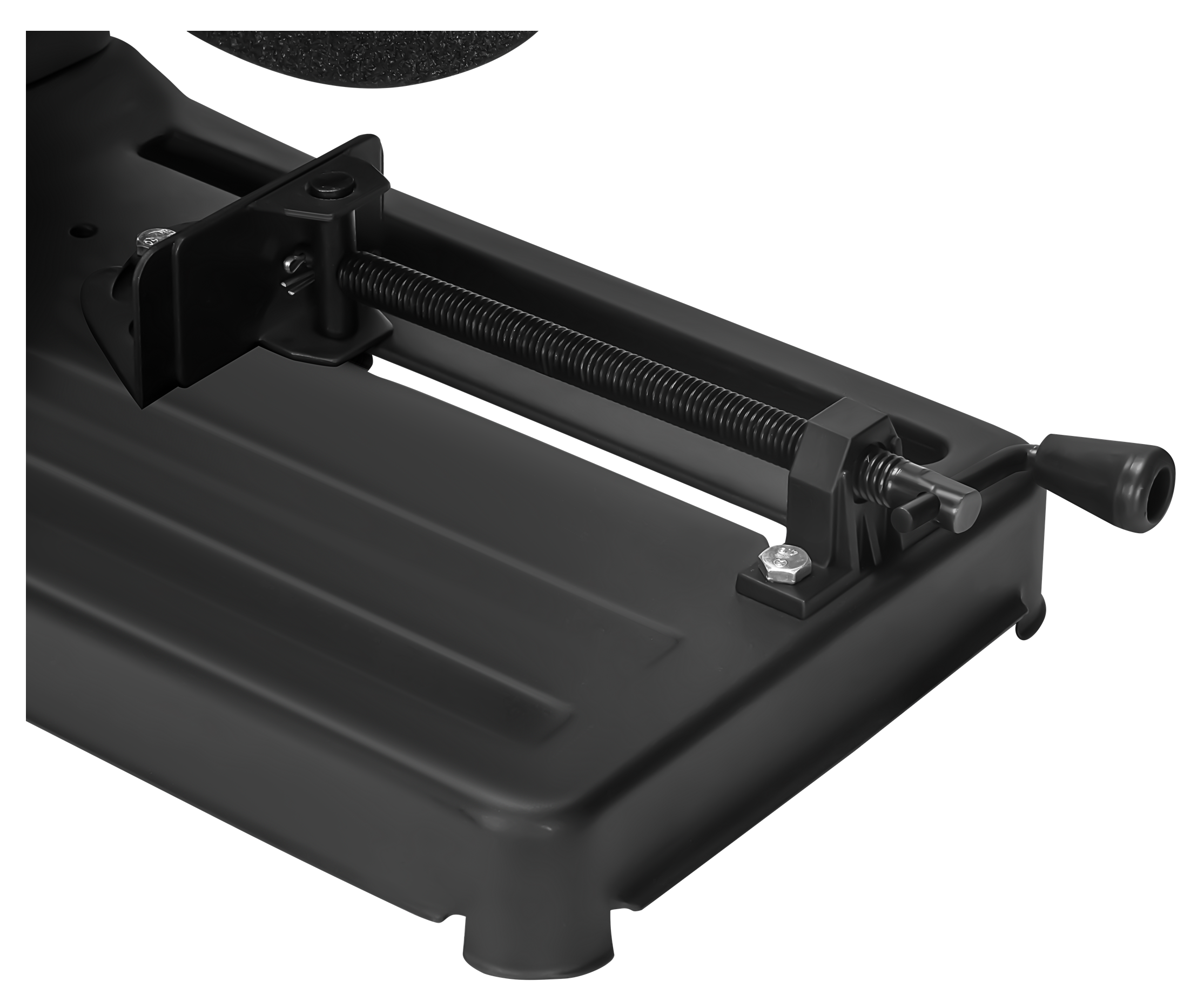 Wbudowane imadło zaciskowe unieruchamia obrabiany element na czas cięcia, eliminując ryzyko przesunięcia materiału. Regulacja kąta zacisku do 45° umożliwia wykonywanie cięć skośnych — przydatne przy montażu ram, konstrukcji stalowych i stolarki metalowej.
