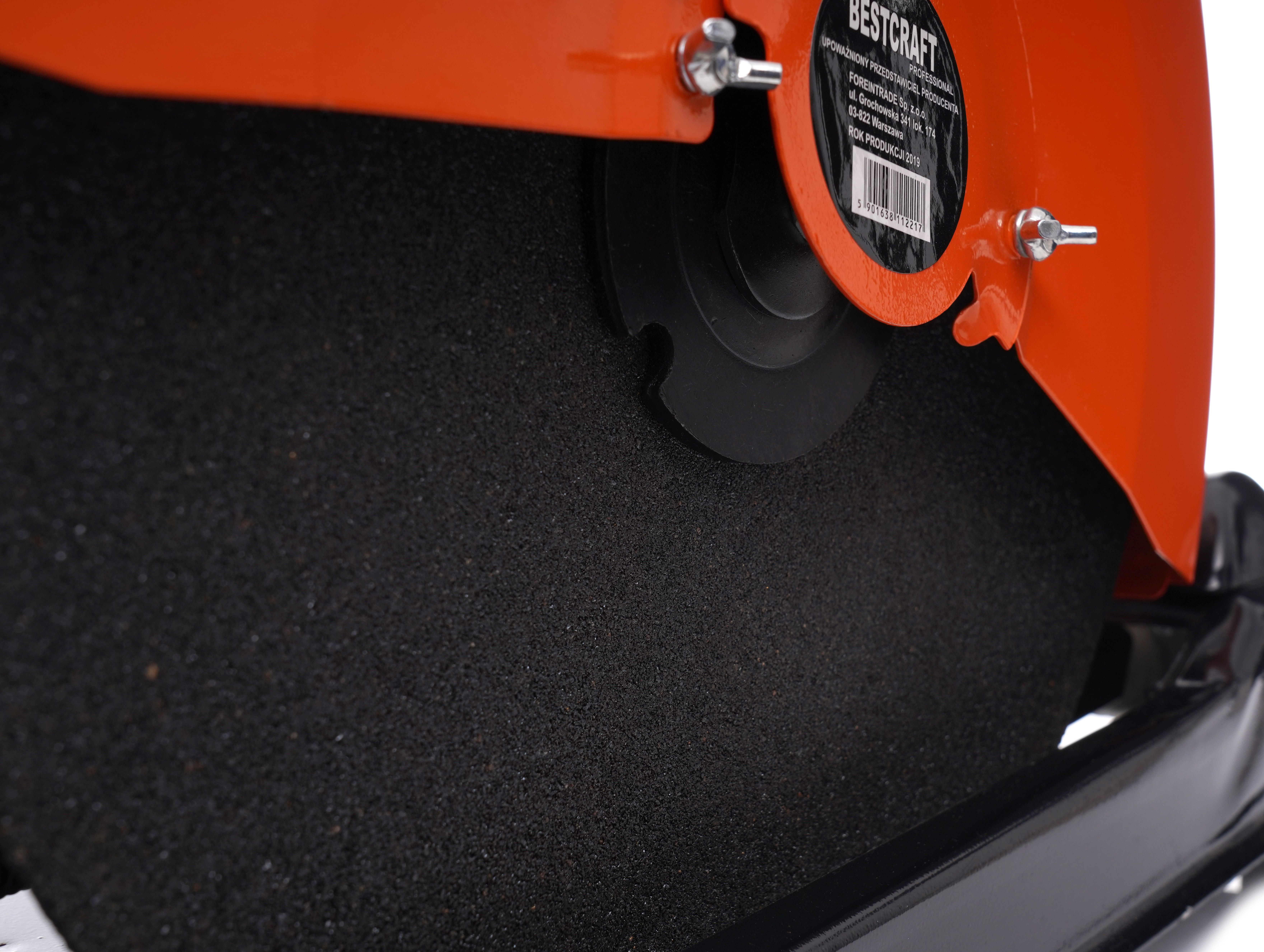 Wysoka moc silnika przekłada się na zdolność do cięcia grubościennych profili stalowych, rur i kształtowników bez utraty prędkości obrotowej pod obciążeniem. Prędkość 3800 obr/min zapewnia czysty przekrój cięcia przy minimalnym zadziorzeniu krawędzi.