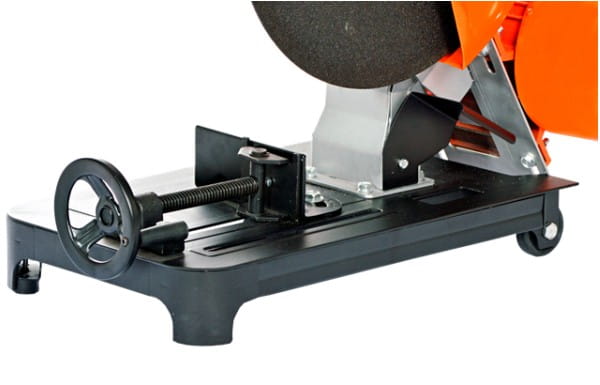 Imadło zintegrowane z podstawą maszyny unieruchamia przecinany element przed uruchomieniem piły. Eliminuje konieczność ręcznego przytrzymywania materiału, co zwiększa bezpieczeństwo pracy i powtarzalność cięć.