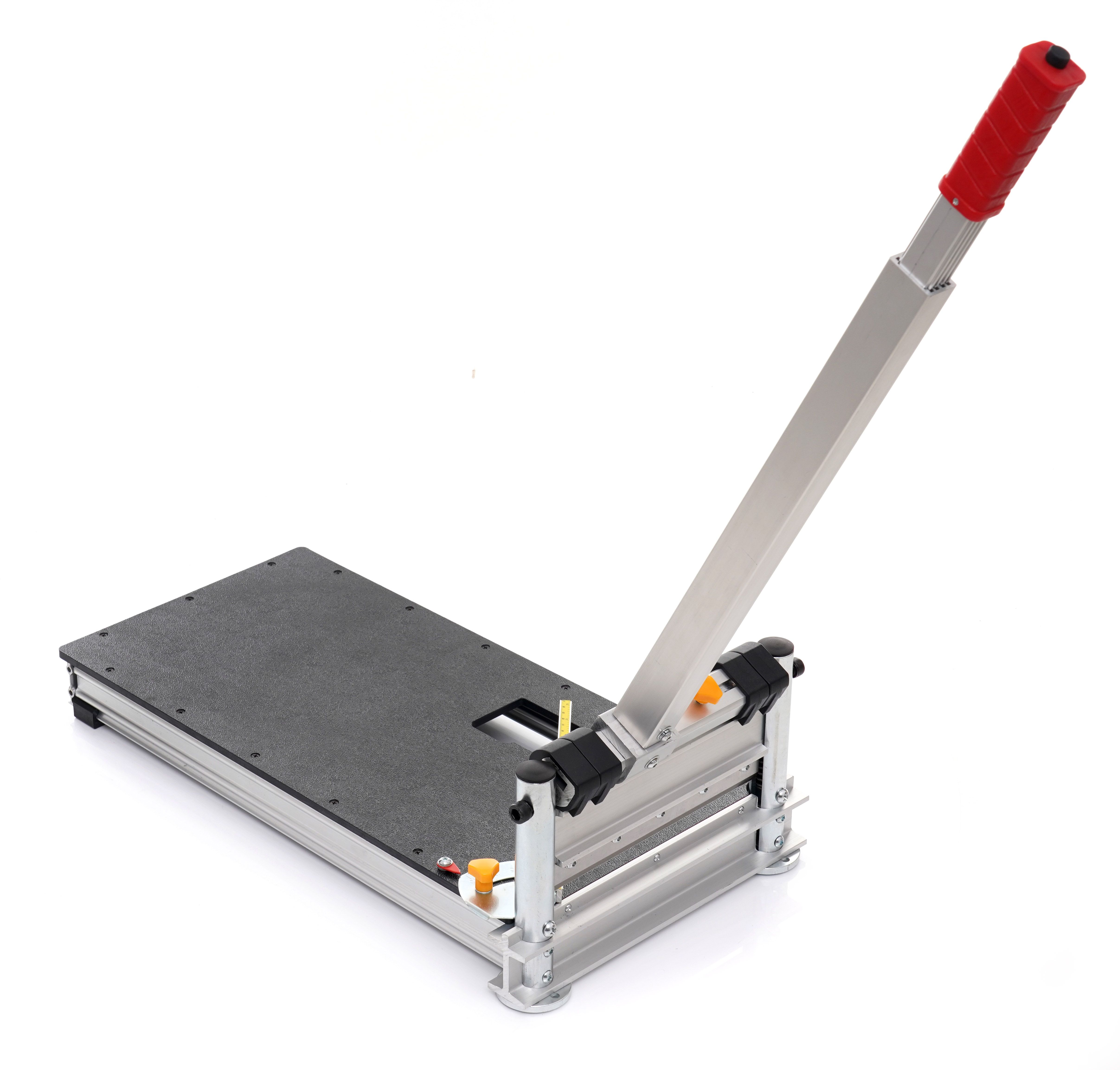 Długa dźwignia pomaga uzyskać skuteczny docisk, dzięki czemu ręczna przecinarka do paneli laminowanych tnie szybciej i pewniej.