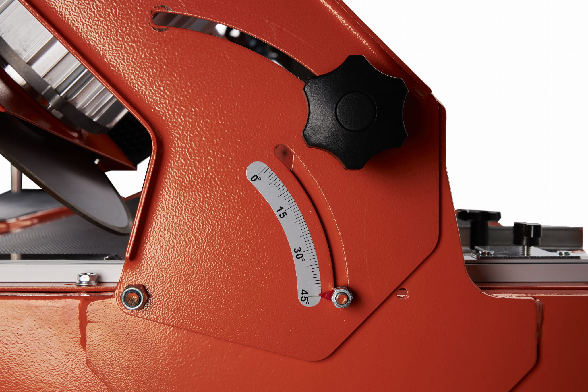 Wyskalowana podziałka kąta pozwala ustawić precyzyjne nachylenie ostrza. Cięcie pod kątem 45° umożliwia wykonywanie połączeń narożnych płytek bez widocznej fugi, a układ karo nie wymaga dodatkowych narzędzi pomiarowych.