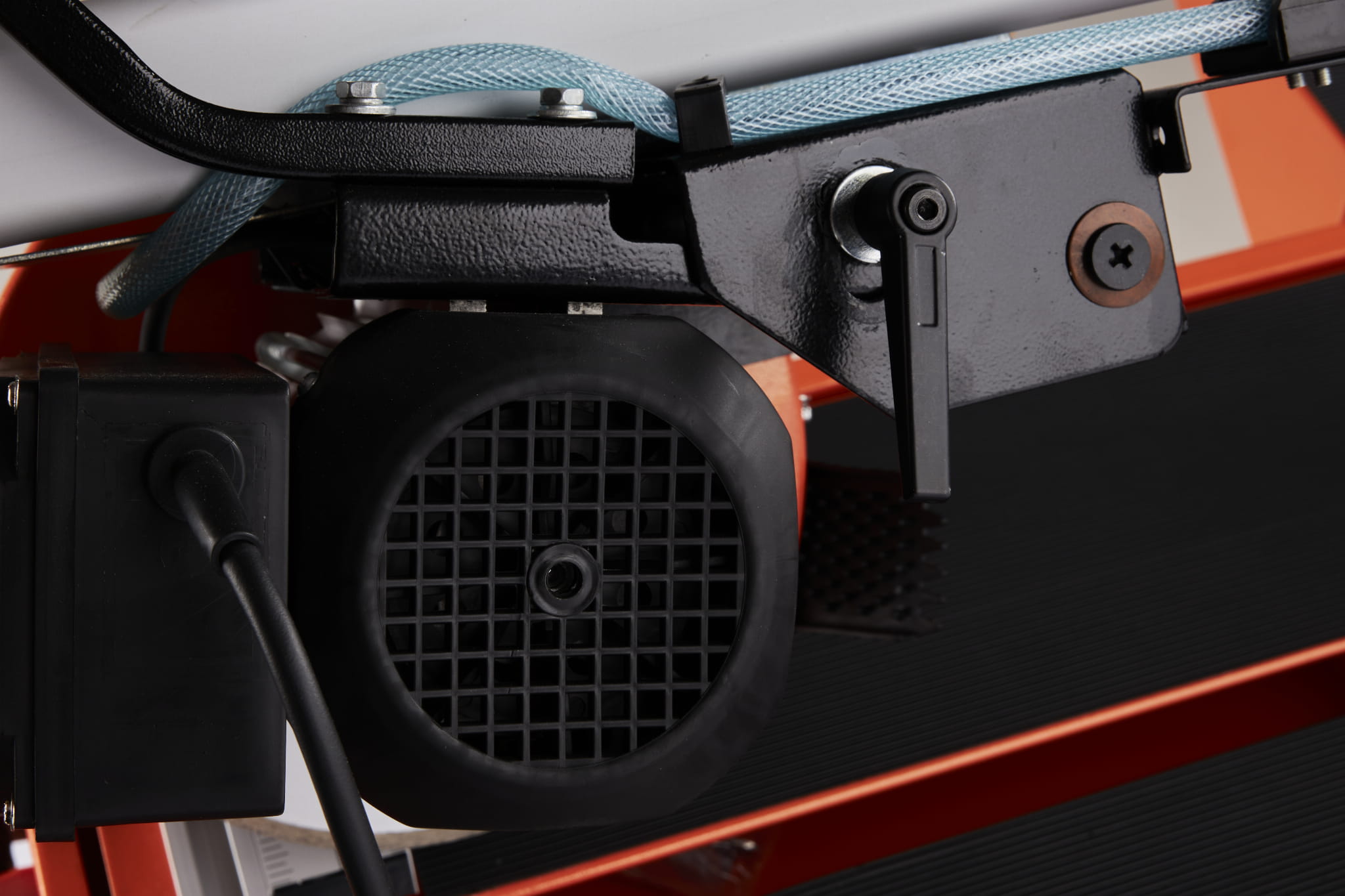 Wbudowana pompka wodna dostarcza wodę bezpośrednio na ostrze podczas cięcia. Chłodzenie tarczy zmniejsza jej zużycie termiczne, ogranicza pylenie i poprawia jakość krawędzi ciętego materiału — szczególnie istotne przy długich sesjach roboczych.