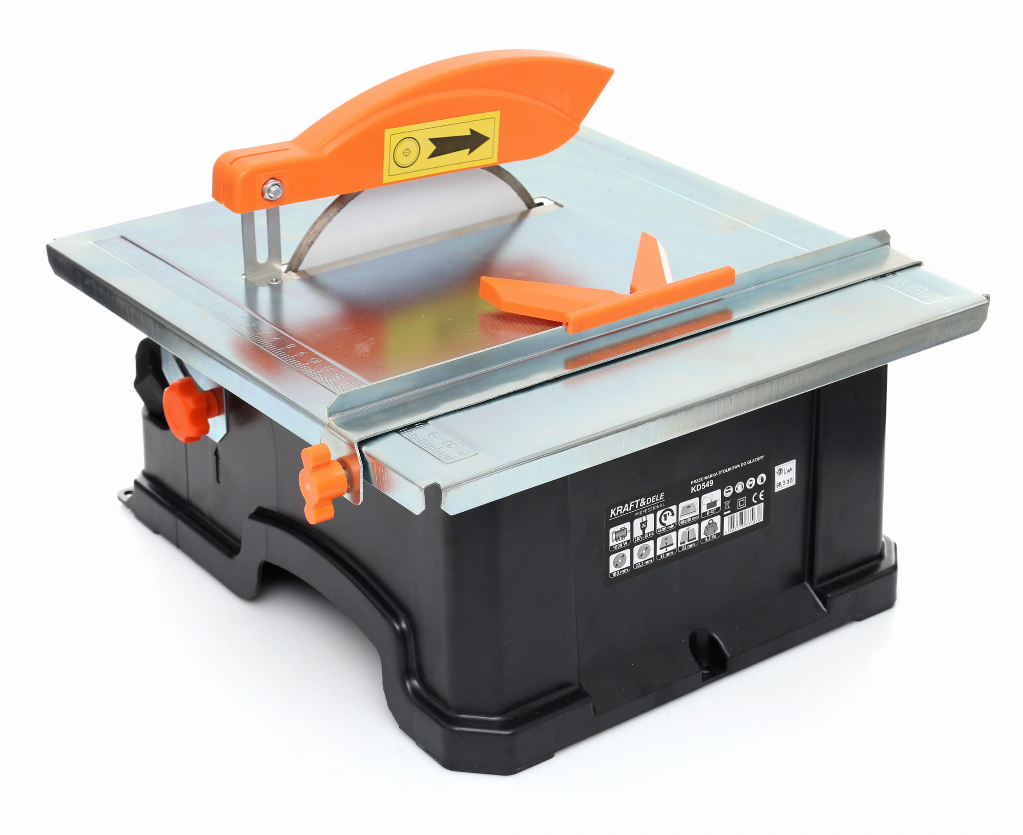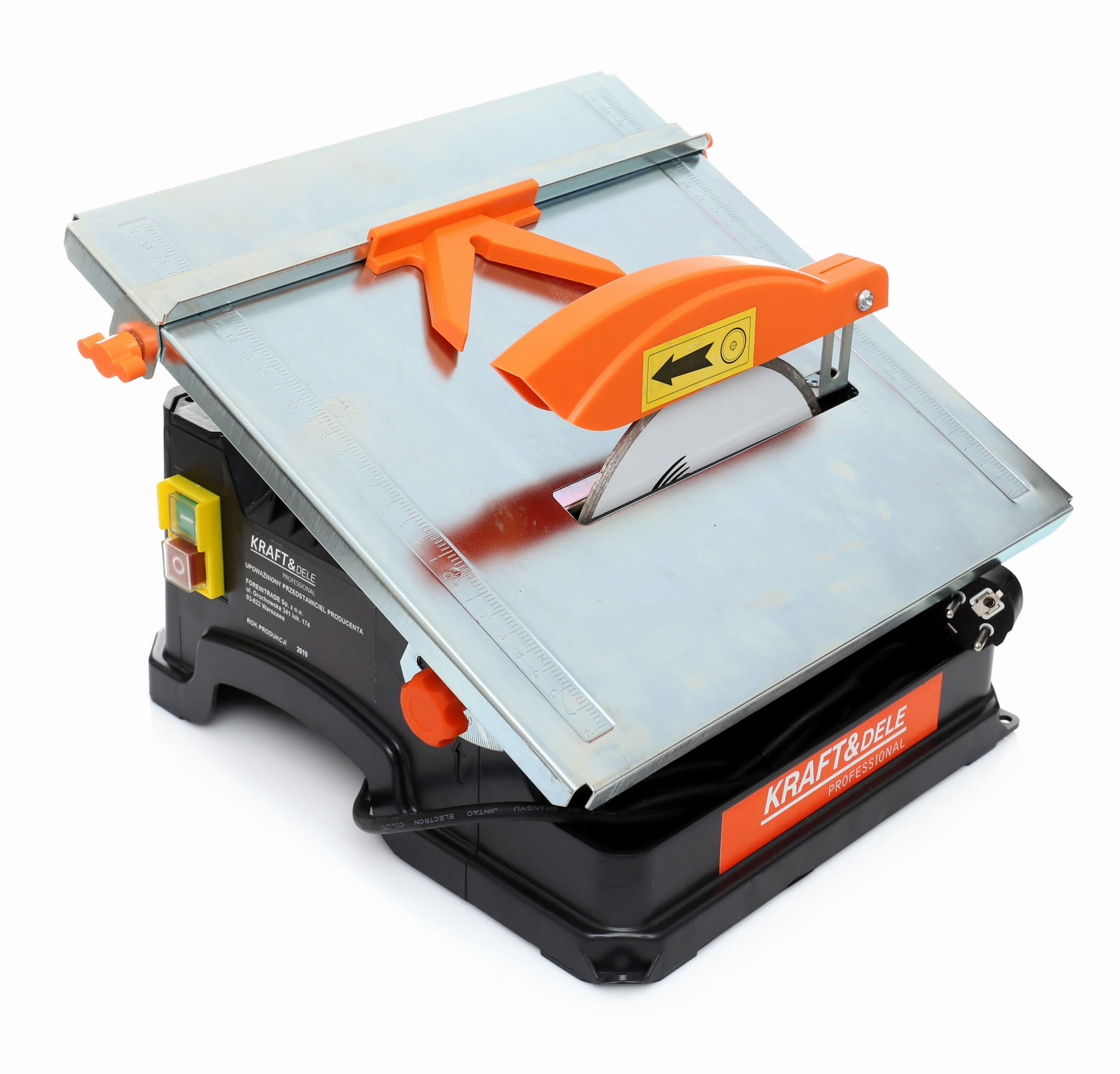 KD549 to stołowa przecinarka do płytek ceramicznych i glazury pracująca w systemie mokrym — diamentowa tarcza tnąca jest chłodzona wodą z kuwety, co ogranicza pylenie, wydłuża żywotność tarczy i zapewnia czysty rzaz. Urządzenie obsługuje cięcia proste, ukośne oraz w układzie karo.