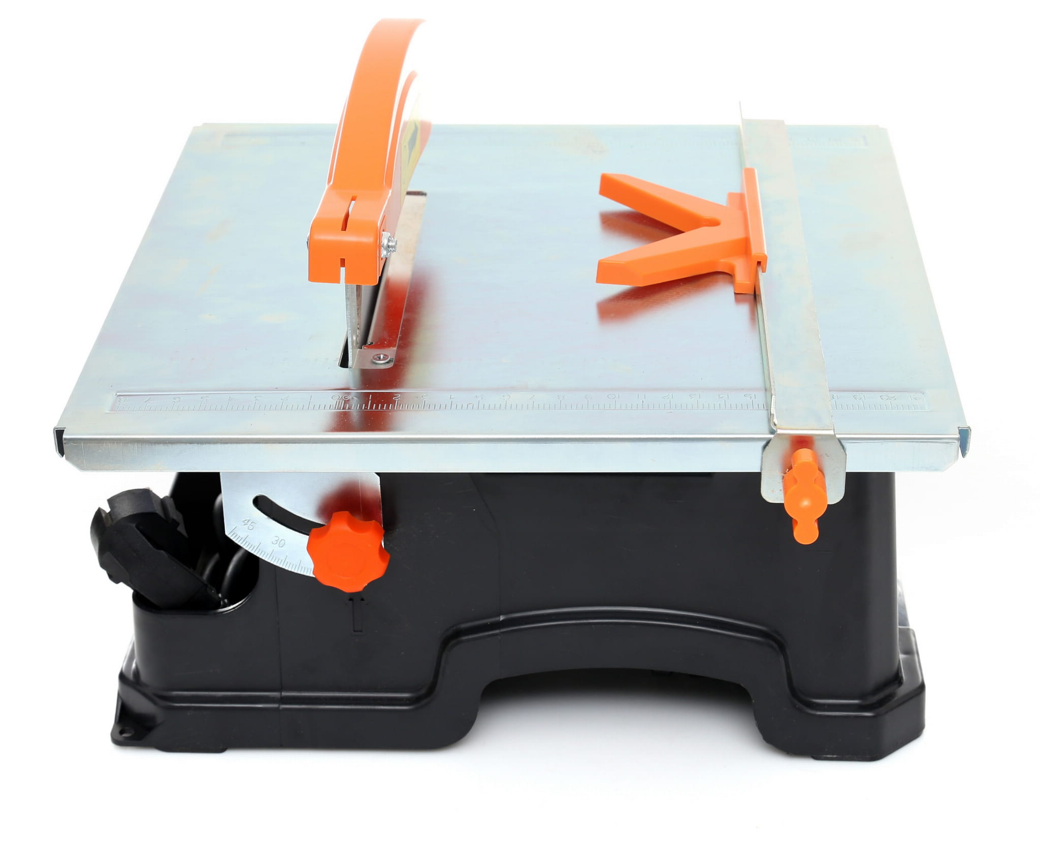 Stół roboczy pozwala na ustawienie kąta cięcia w zakresie do 45°. Możliwe jest cięcie prostopadłe (90°) z głębokością 32 mm, ukośne pod kątem 15° z głębokością 22 mm oraz układanie płytek w karo. Regulacja kąta jest przydatna przy wykańczaniu naroży i progów.