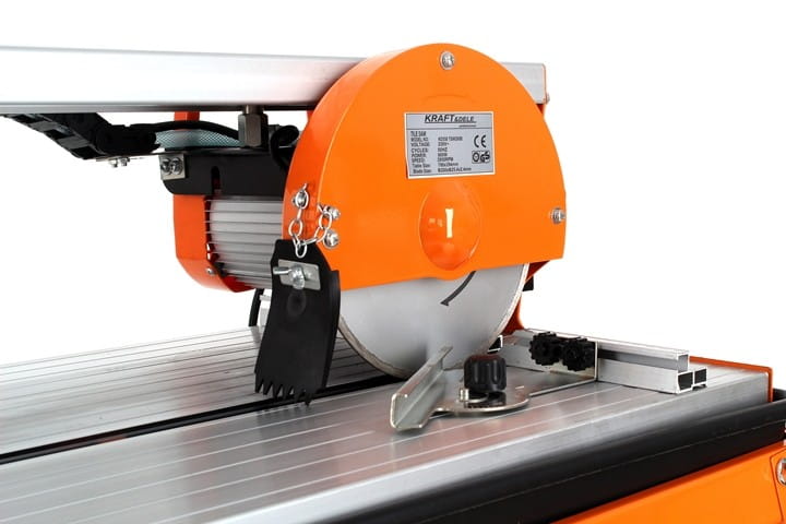 Urządzenie współpracuje z tarczami o średnicy Ø200mm i otworze Ø25,4mm. Do cięcia materiałów kamiennych i ceramicznych stosuje się tarcze diamentowe (segmentowe lub ciągłe). Zmiana przeznaczenia na cięcie drewna wymaga zastosowania tarczy pilarskiej z identycznymi parametrami geometrycznymi — przed montażem należy upewnić się, że maksymalna prędkość obrotowa tarczy wynosi co najmniej 2950 obr./min.