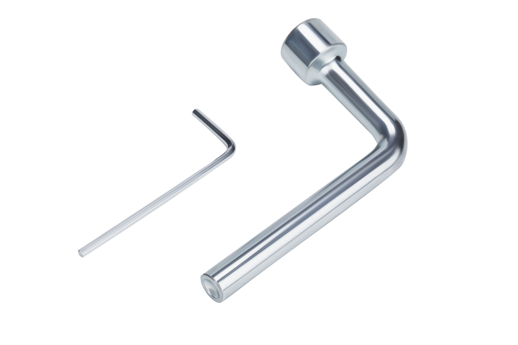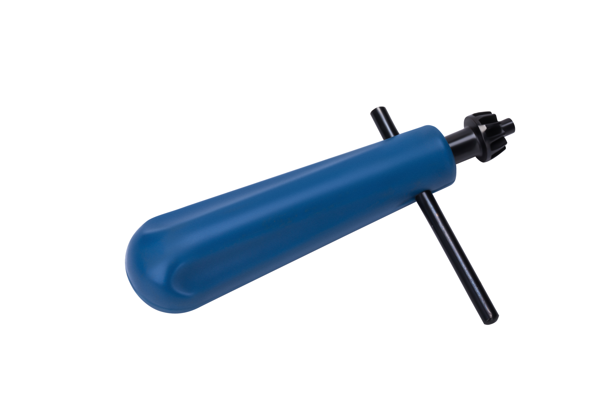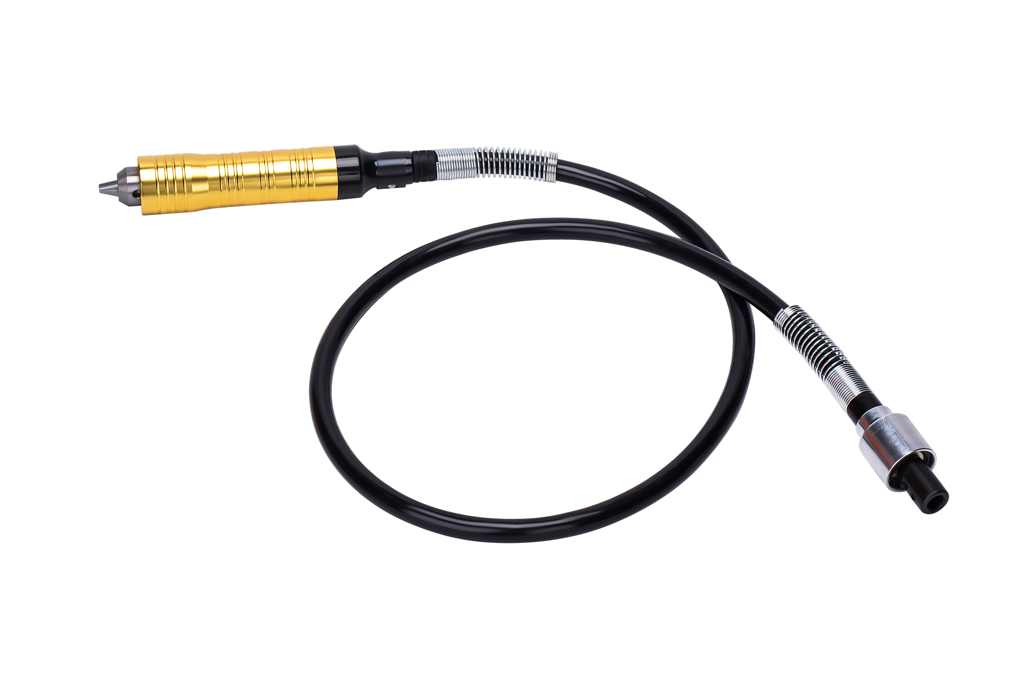 Po zdemontowaniu tarczy 100mm do urządzenia można podłączyć elastyczny wałek giętki zakończony uchwytem wiertarskim. Umożliwia to pracę w narożnikach, przy listwach i innych miejscach niedostępnych dla standardowej tarczy.