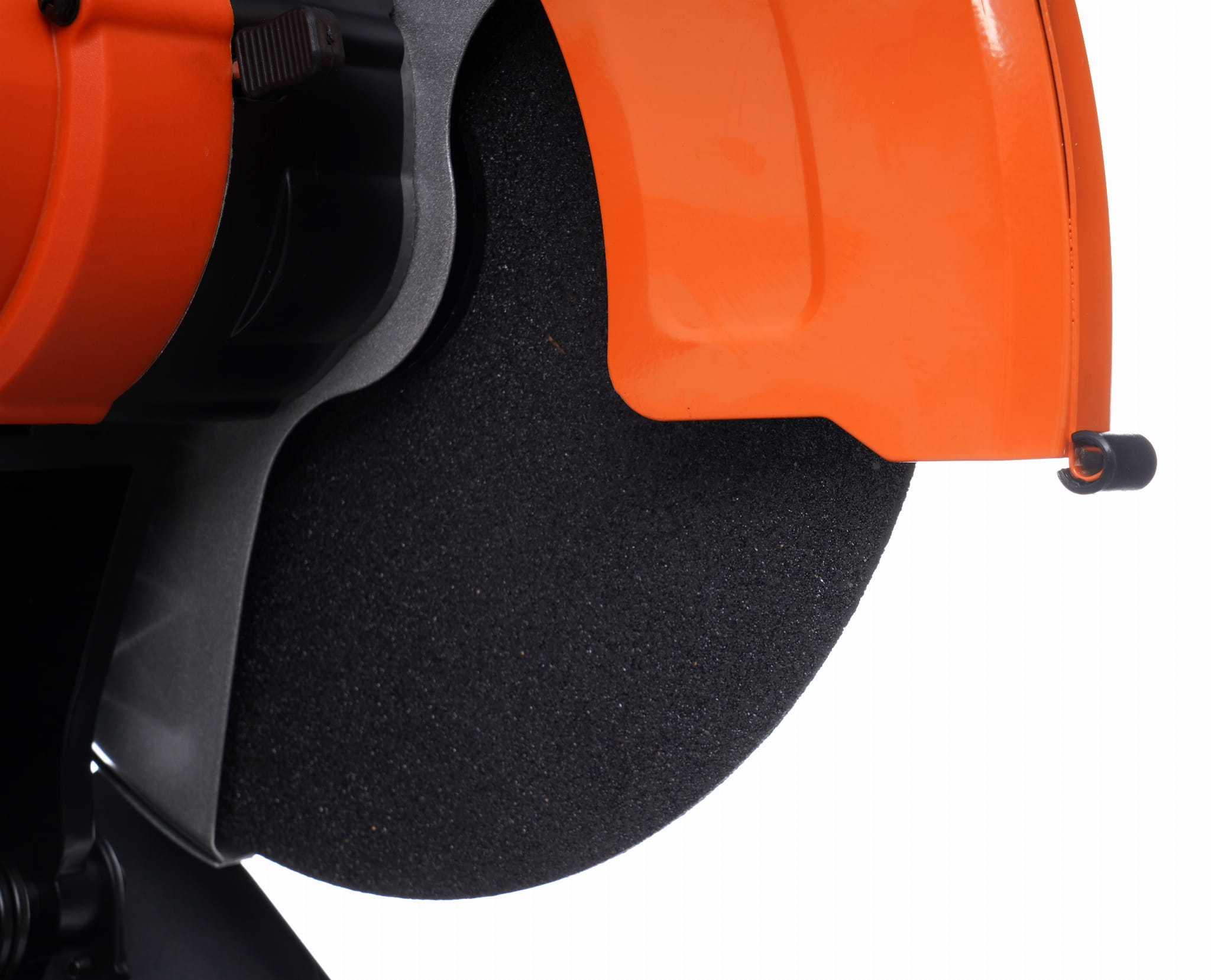Wysoka moc zapewnia stałą prędkość cięcia nawet przy obciążeniu twardymi materiałami stalowymi i żeliwnymi, co przekłada się na równomierne i czyste przejście tarczy przez materiał.