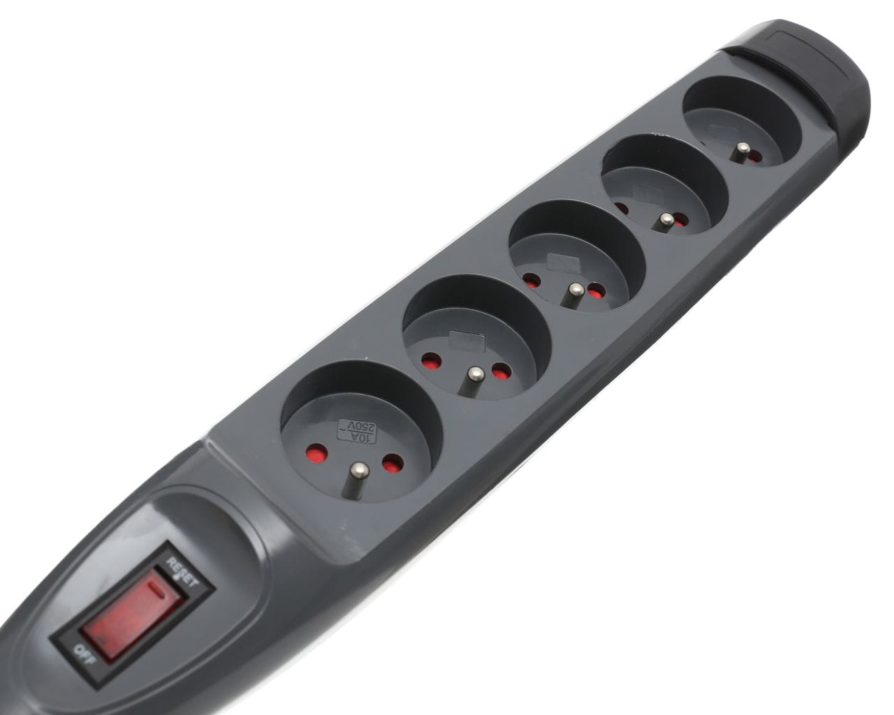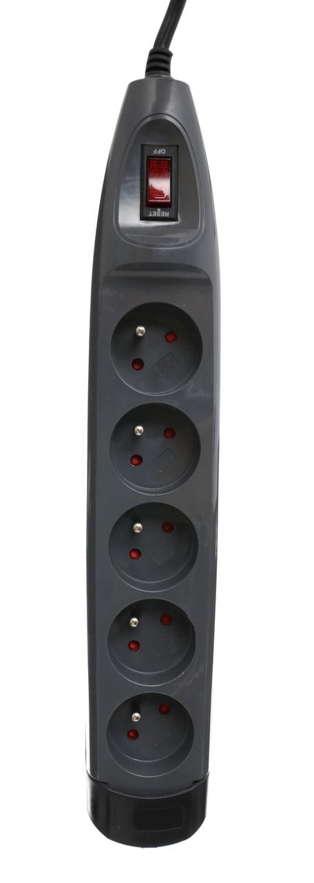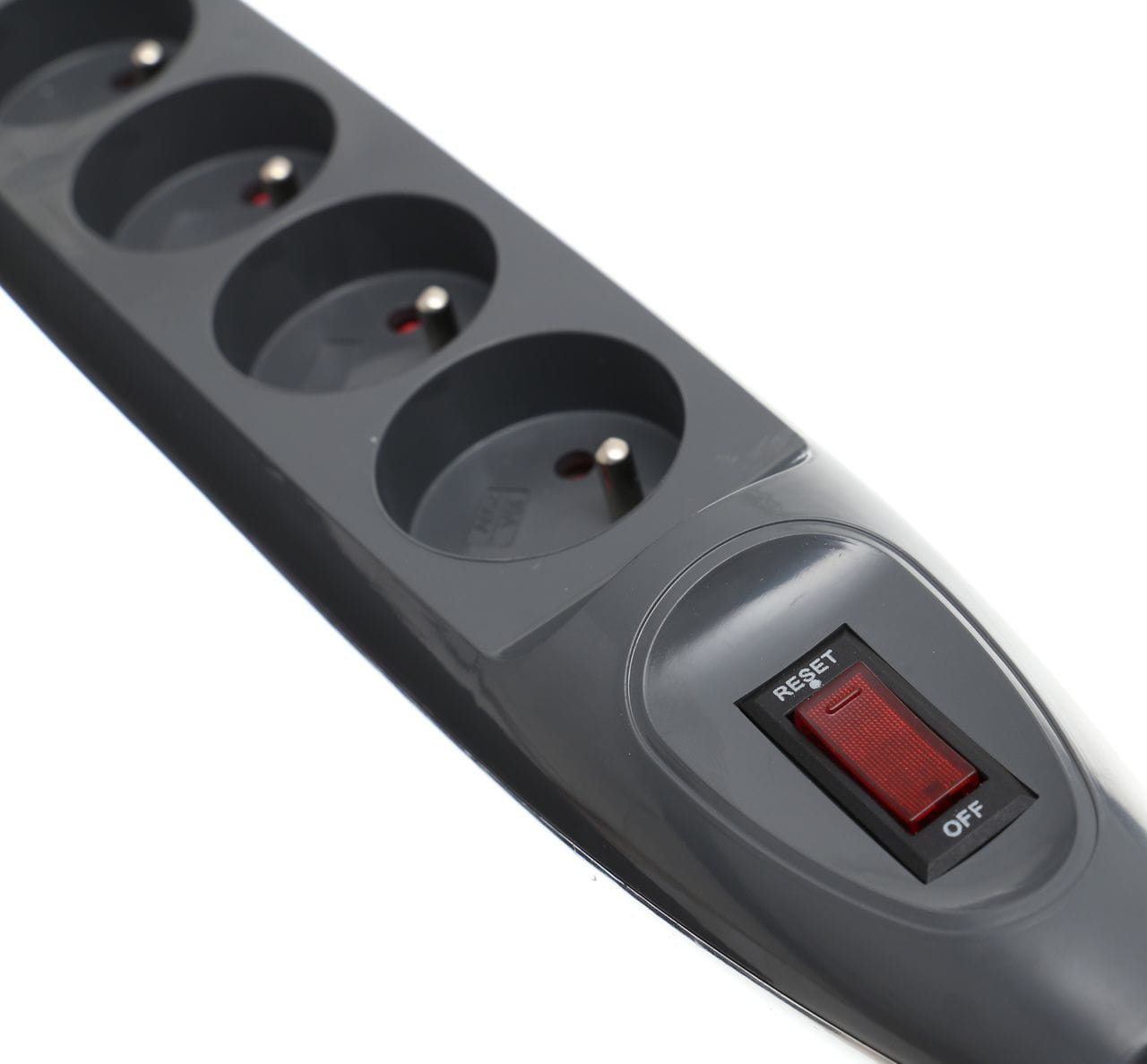 Automatyczny wyłącznik odcina zasilanie w przypadku przekroczenia dopuszczalnego obciążenia listwy. Chroni podłączone urządzenia przed skutkami zwarcia lub przeciążenia sieci i eliminuje konieczność wymiany bezpiecznika — wystarczy wcisnąć przycisk reset.