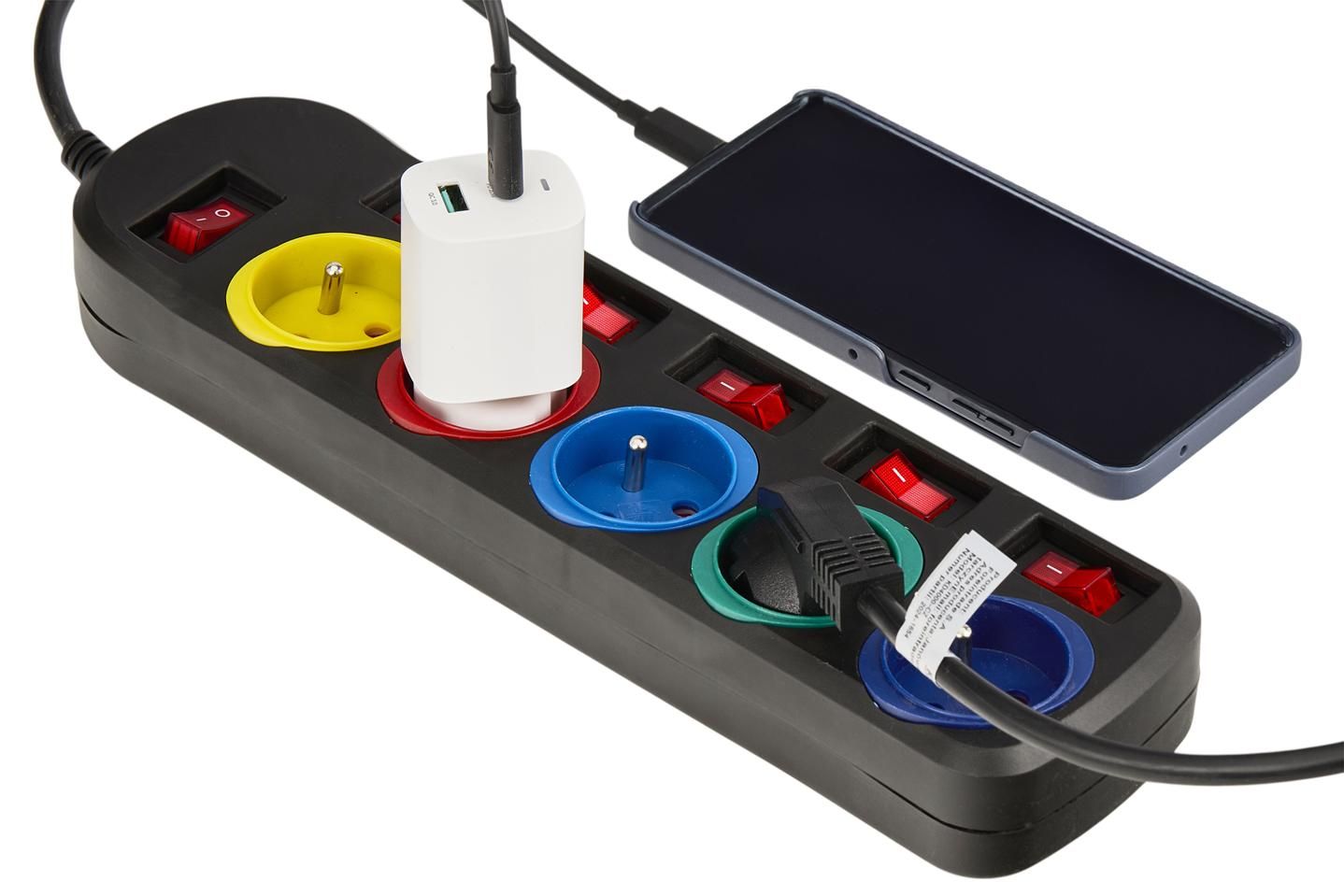 Pięć gniazd i 5-metrowy przewód ułatwiają organizację zasilania bez plątaniny kabli i ciągłego przepinania.