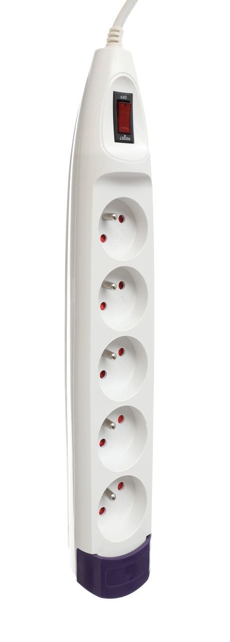 Automatycznie odcina zasilanie w przypadku przekroczenia dopuszczalnego obciążenia listwy. Chroni podłączone urządzenia przed uszkodzeniem i ogranicza ryzyko przegrzania instalacji. Po ustąpieniu przeciążenia wyłącznik można ręcznie zresetować.