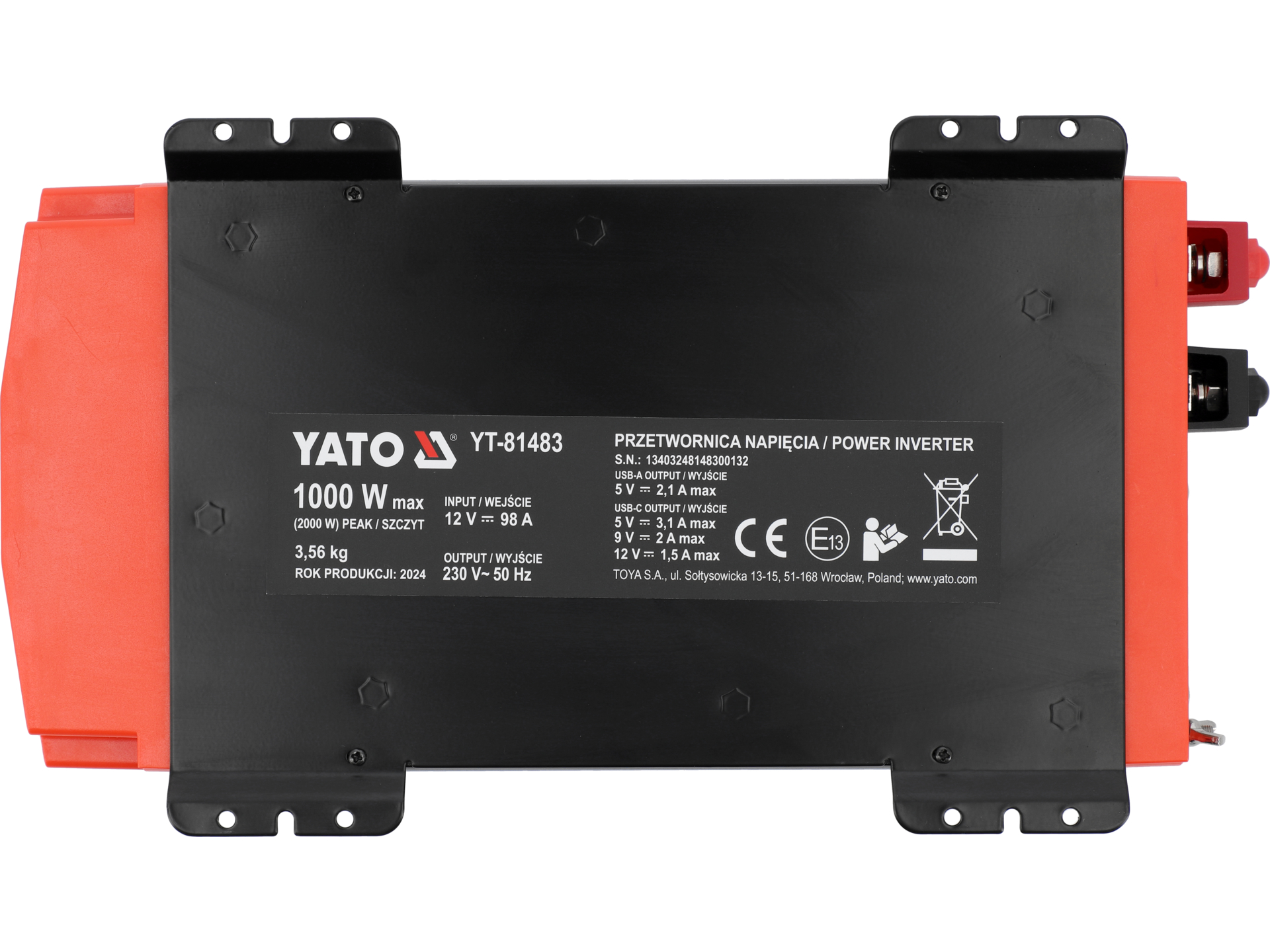 Przetwornica napięcia z czystą sinusoidą do zasilania urządzeń elektrycznych 230V z akumulatorów 12V. Urządzenie przeznaczone do zastosowań mobilnych, warsztatowych i awaryjnych, umożliwiające niezależne zasilanie sprzętu elektrycznego w miejscach bez dostępu do sieci energetycznej.