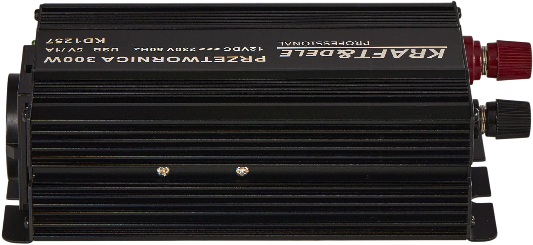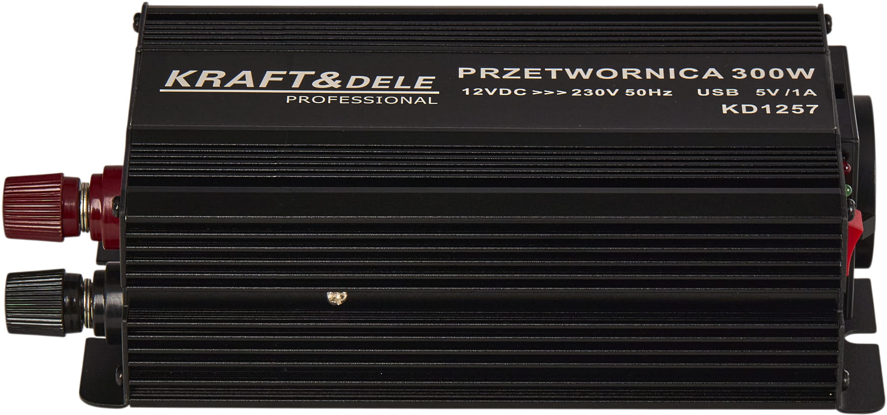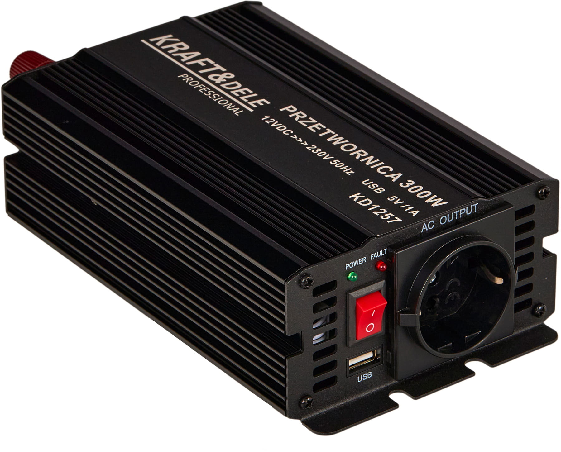 KD1257 to inwerter DC/AC zamieniający napięcie stałe 12V (akumulator samochodowy lub instalacja pojazdu) na napięcie przemienne 230V o przebiegu czystej sinusoidy. Oznacza to, że kształt napięcia wyjściowego jest identyczny z tym dostarczanym przez standardową sieć energetyczną — bez zakłóceń i harmonicznych charakterystycznych dla przetwornic quasi-sinusoidalnych.