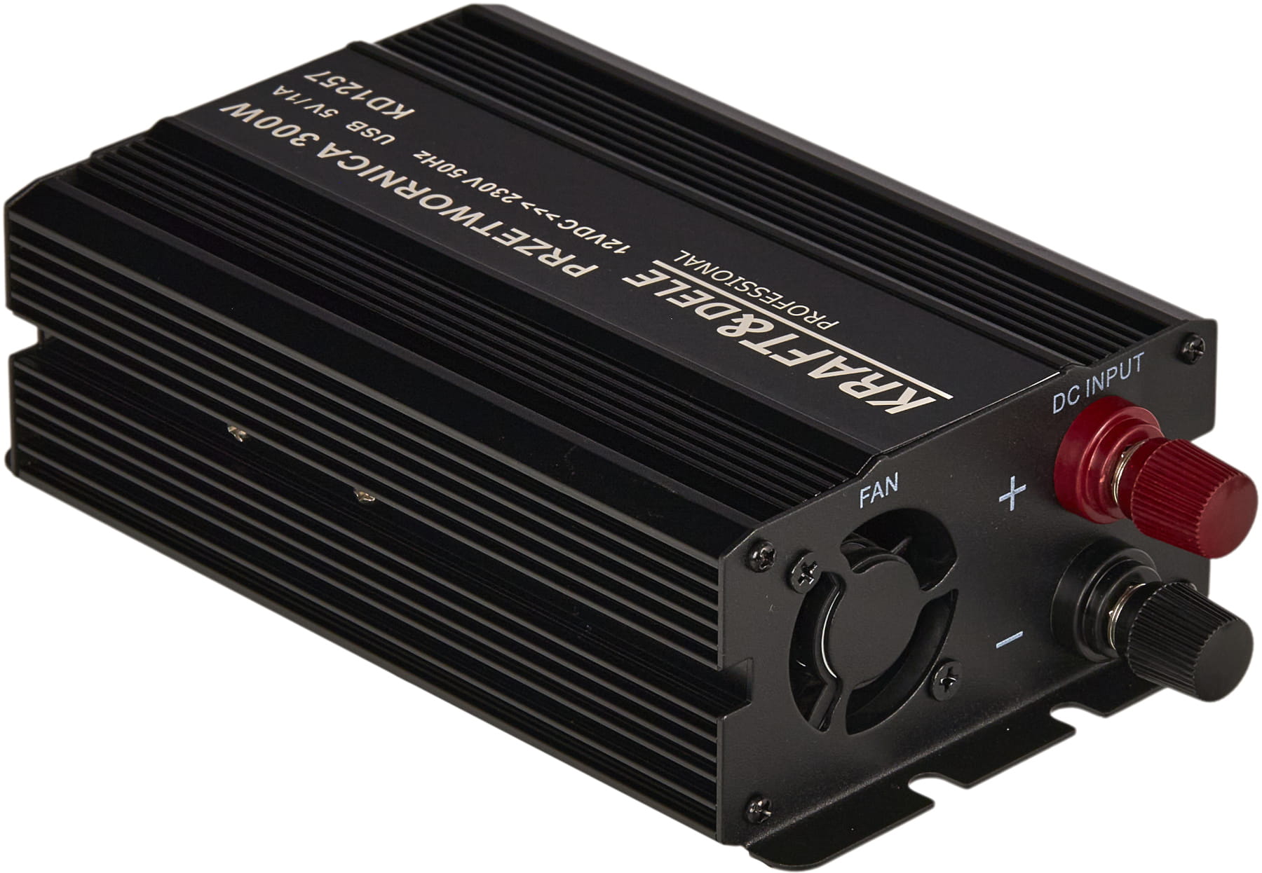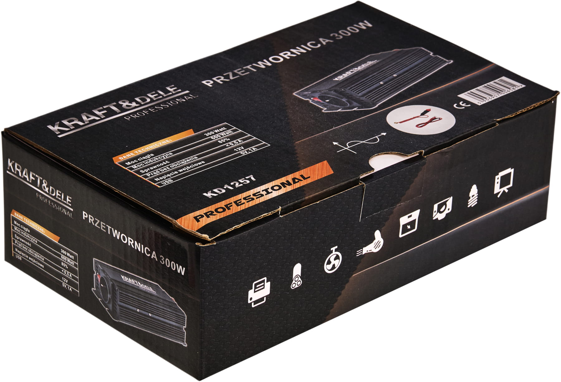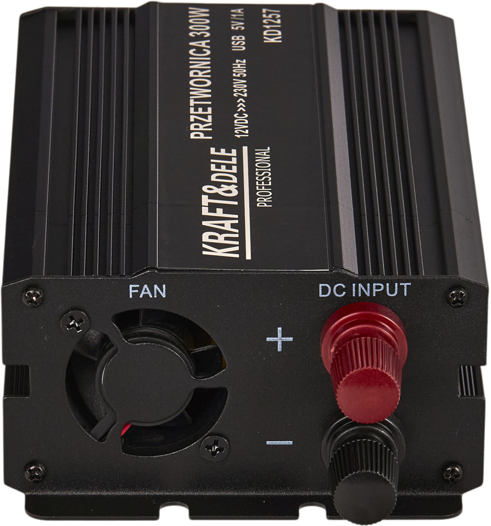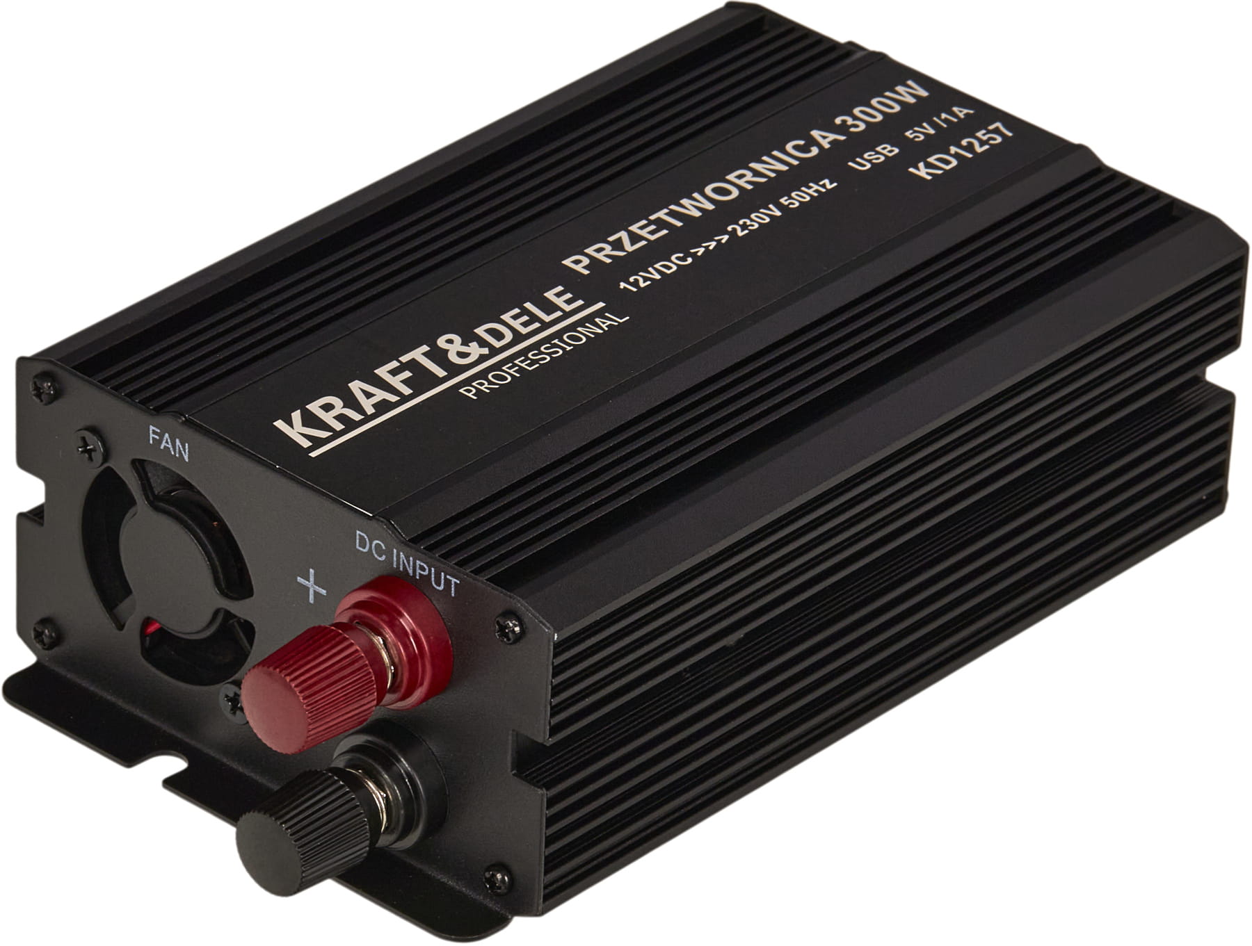 KD1257 to inwerter DC/AC zamieniający napięcie stałe 12V (akumulator samochodowy lub instalacja pojazdu) na napięcie przemienne 230V o przebiegu czystej sinusoidy. Oznacza to, że kształt napięcia wyjściowego jest identyczny z tym dostarczanym przez standardową sieć energetyczną — bez zakłóceń i harmonicznych charakterystycznych dla przetwornic quasi-sinusoidalnych.