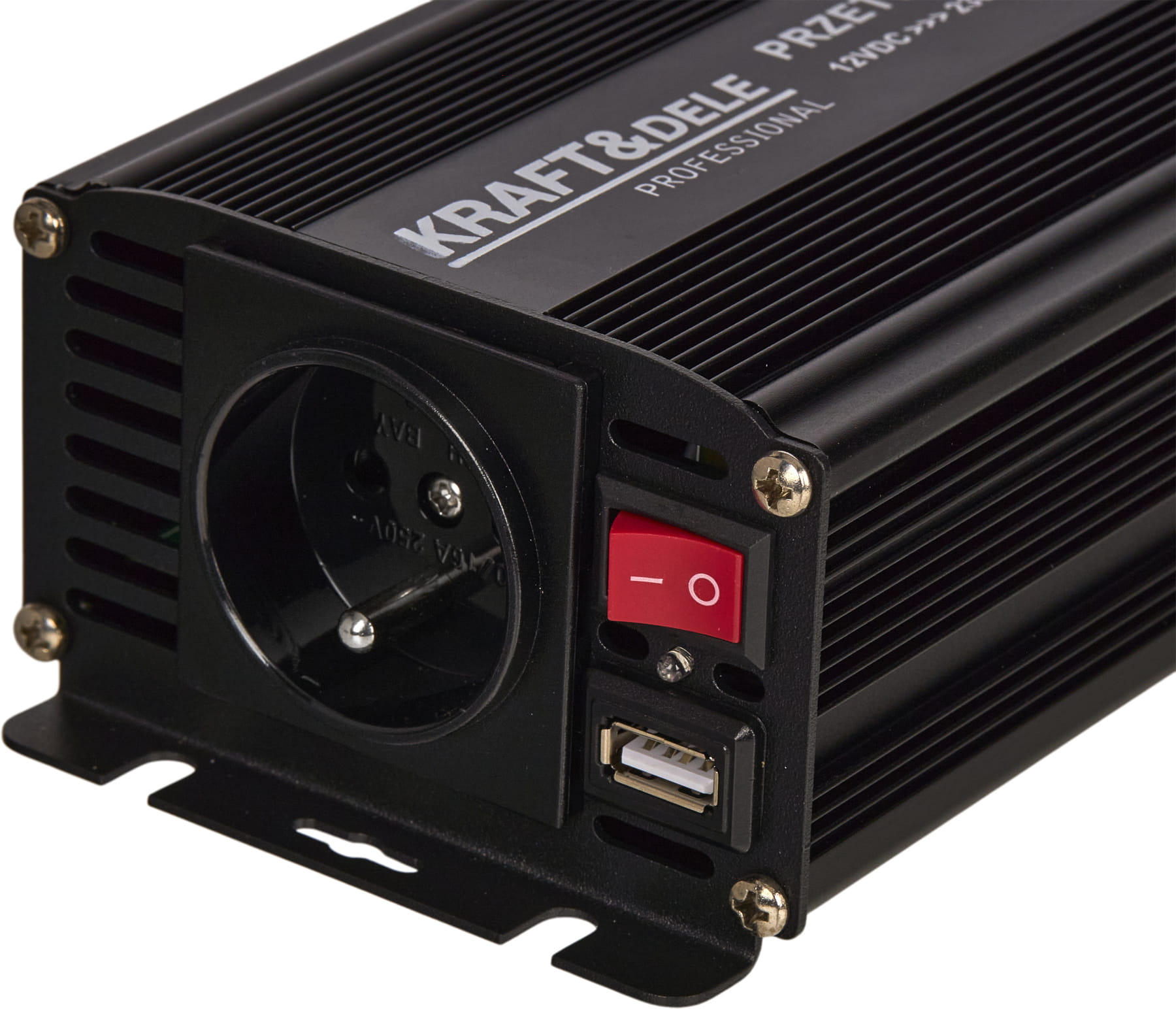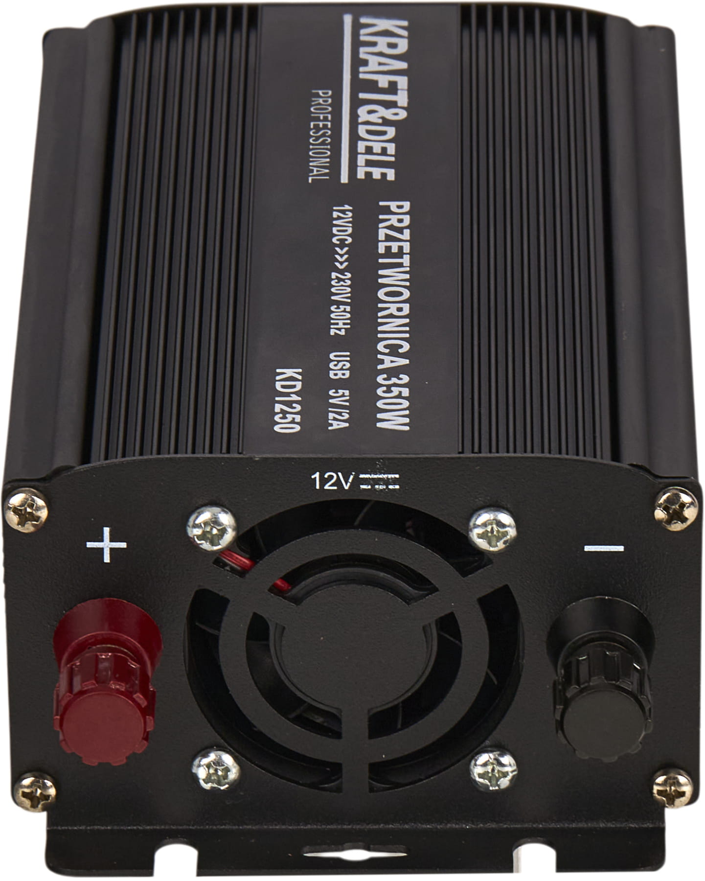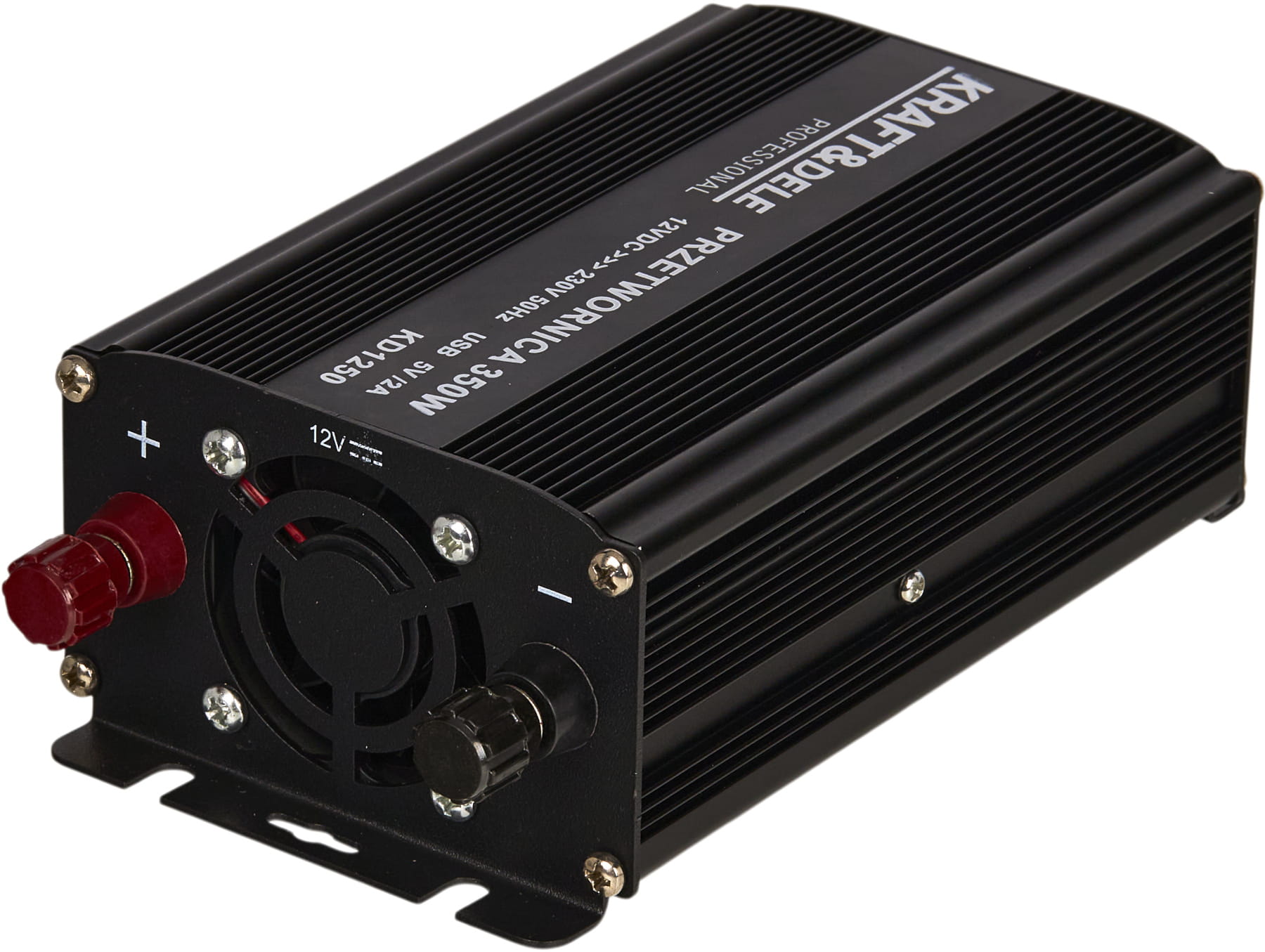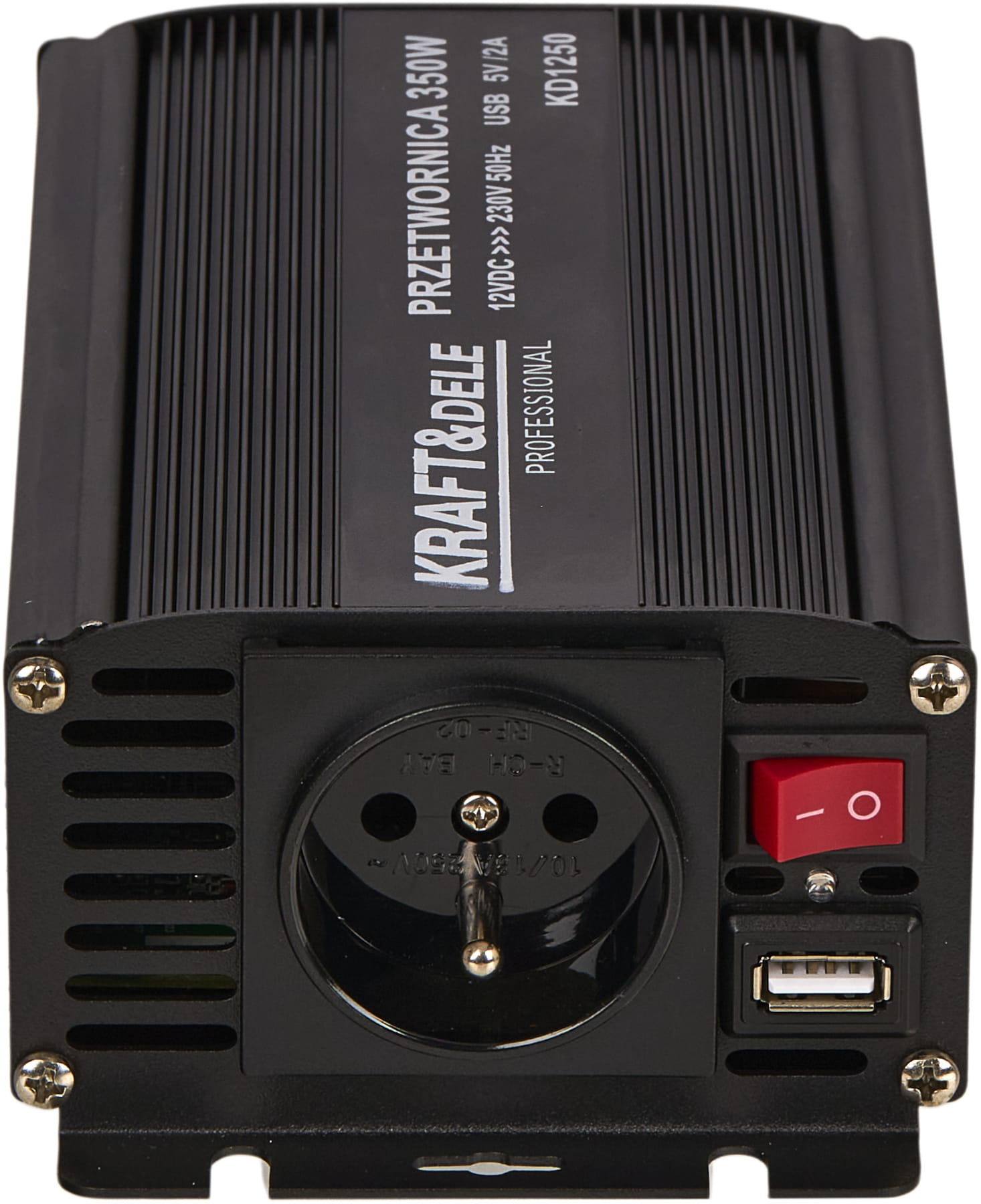 Przetwornica KD1250 to inwerter DC/AC przekształcający napięcie stałe 12V z akumulatora samochodowego lub instalacji pojazdu na napięcie przemienne 230V AC. Umożliwia zasilanie standardowych urządzeń elektrycznych w warunkach mobilnych — bez dostępu do sieci energetycznej.