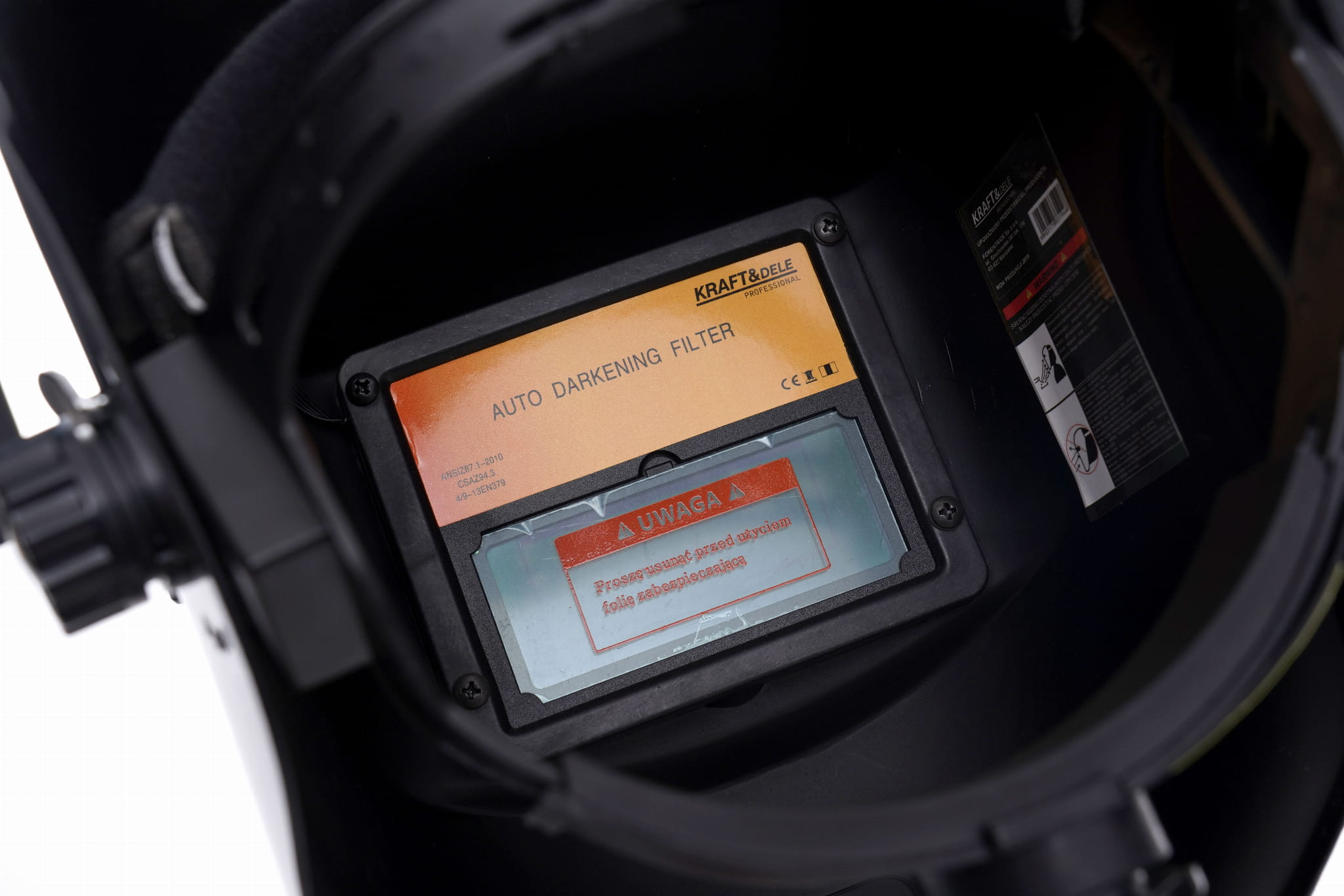 KD849 to przyłbica spawalnicza wyposażona w automatyczny filtr samościemniający, który reaguje na łuk spawalniczy i chroni oczy oraz twarz operatora przed promieniowaniem UV, IR i oślepiającym blaskiem łuku. Przeznaczona do prac spawalniczych metodami MIG, MAG, TIG oraz spawania elektrodowego.