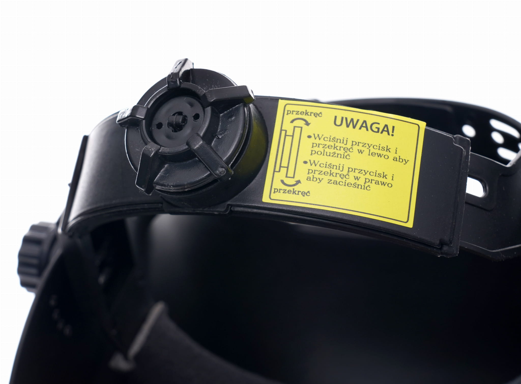Konstrukcja przyłbicy osłania całą twarz spawacza przed odpryskami, promieniowaniem ultrafioletowym i podczerwonym generowanym podczas procesu spawania.