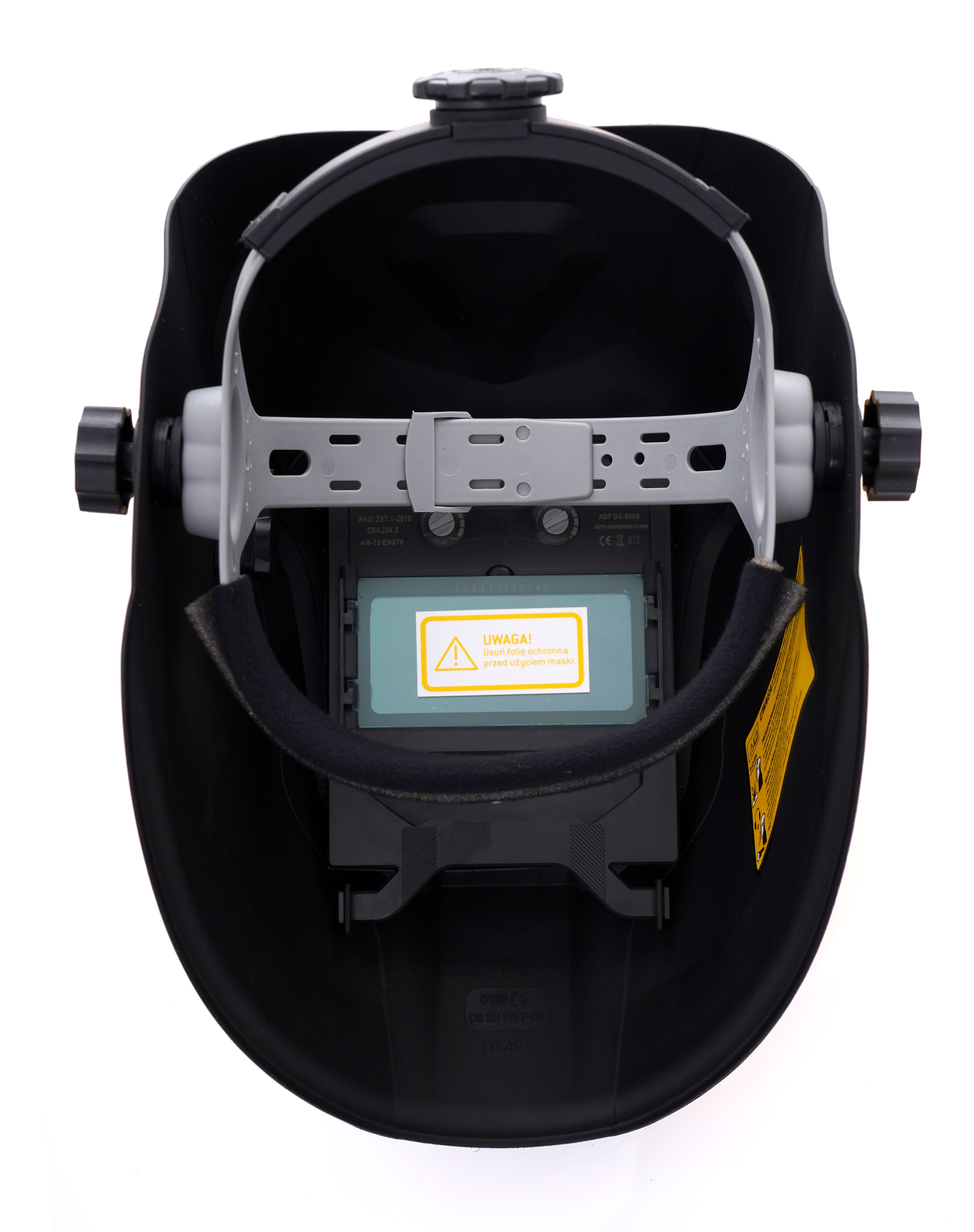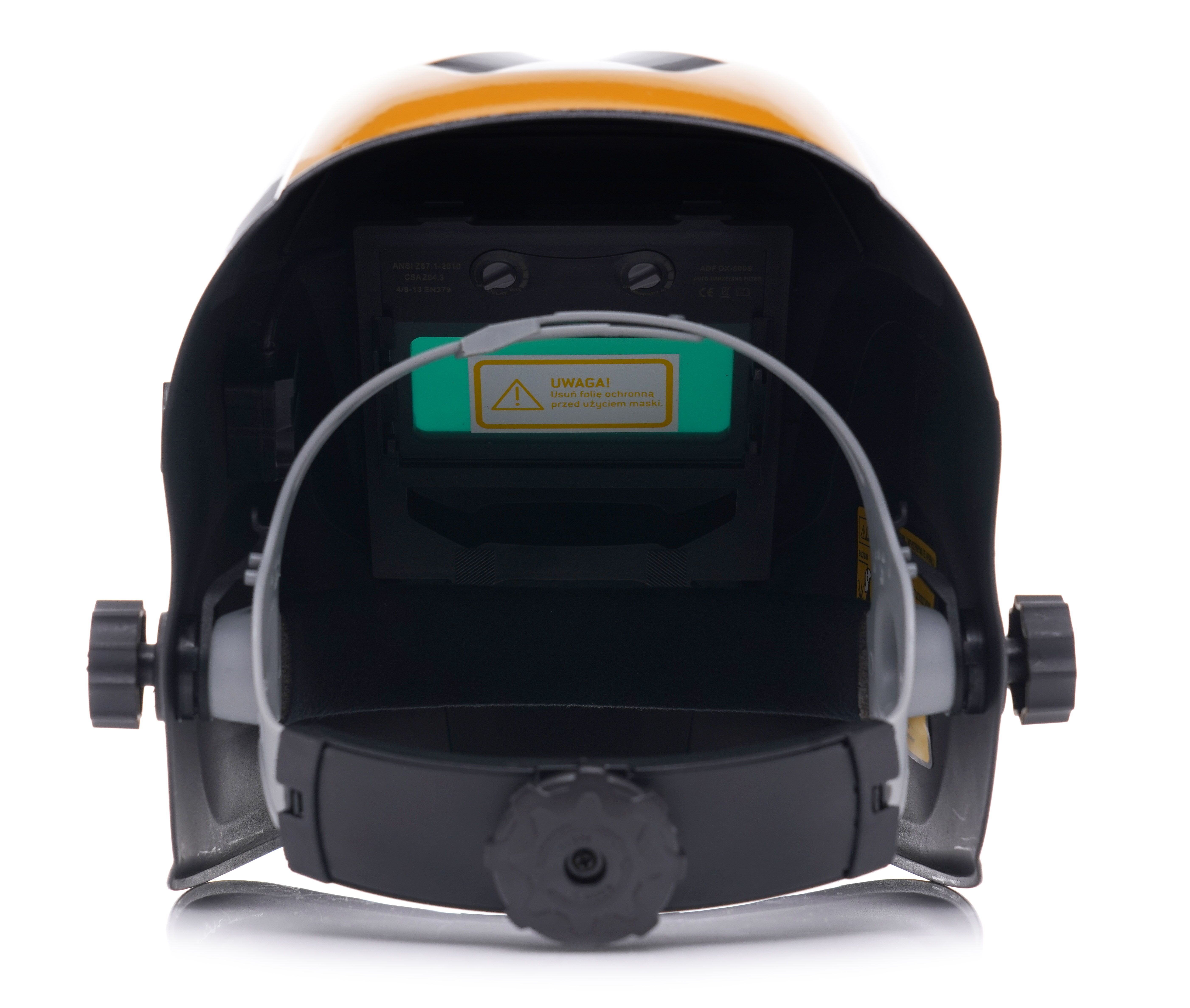 Zewnętrzna regulacja zaciemnienia ułatwia szybkie dostosowanie maski samościemniającej do warunków na stanowisku.