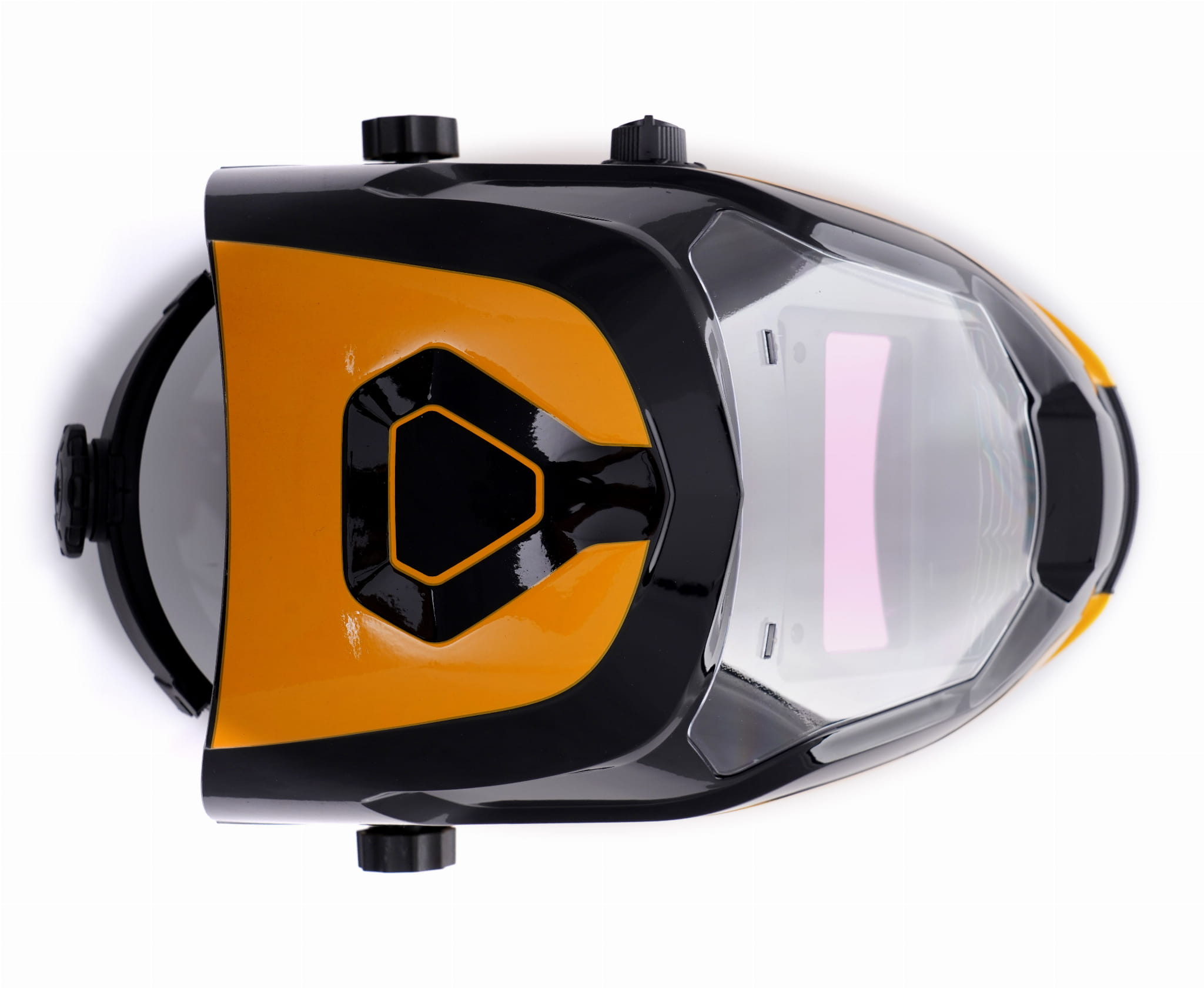 Pokrętło regulacji zaciemnienia umieszczono na zewnętrznej, łatwo dostępnej powierzchni obudowy. Umożliwia to zmianę ustawień bez zdejmowania maski i bez konieczności zaglądania do instrukcji. Zakres 9–13 DIN pozwala dostosować filtr do różnych metod spawania i natężenia prądu spawania.