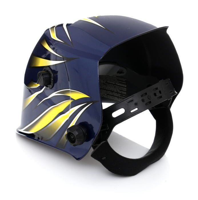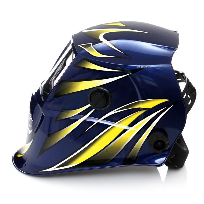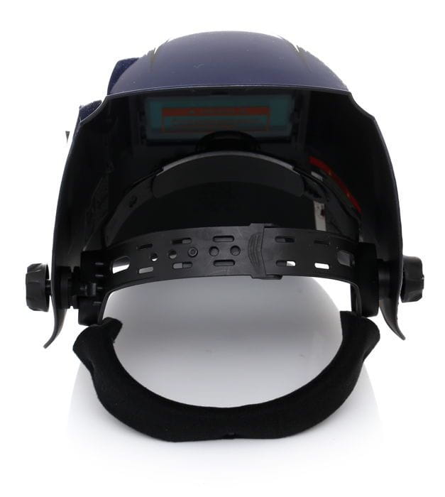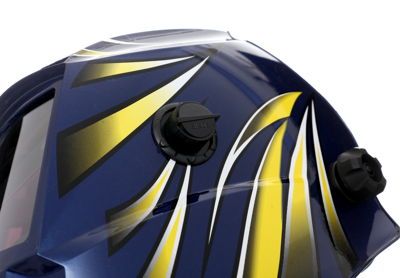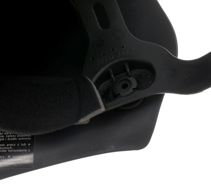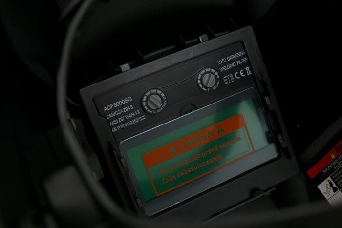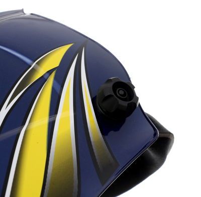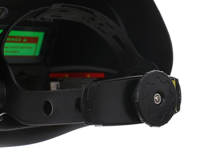 Pokrętło regulacji stopnia zaciemnienia umieszczono na zewnętrznej obudowie przyłbicy, w miejscu dostępnym bez zdejmowania jej z głowy. Pozwala to na szybkie dostosowanie poziomu ochrony do aktualnie stosowanej metody spawania i natężenia prądu — bez przerywania pracy.
