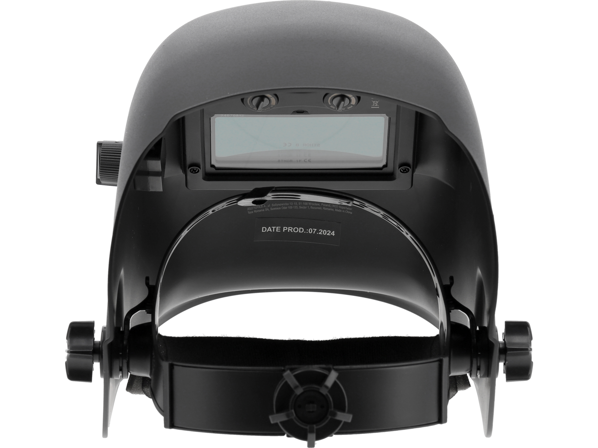 Przed rozpoczęciem pracy należy sprawdzić stan baterii CR2032 — wskaźnik niskiego naładowania pojawia się na wyświetlaczu filtra. Regulację stopnia zaciemnienia przeprowadza się pokrętłem zewnętrznym znajdującym się z boku filtra, bez konieczności zdejmowania przyłbicy. Regulacja czasu rozjaśniania dostępna jest od wewnątrz maski.