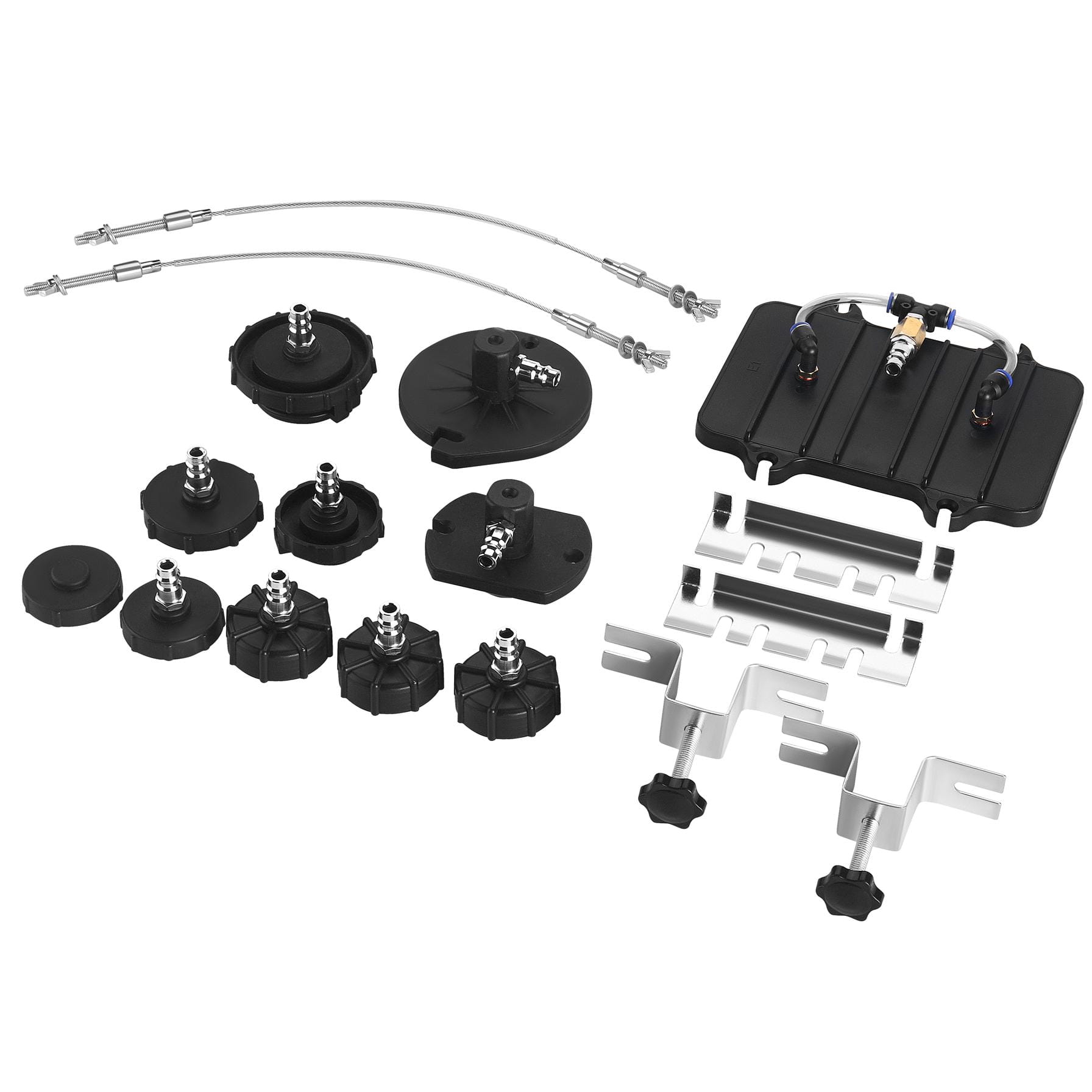 Zestaw zawiera adaptery dostosowane do różnych typów zaworków odpowietrzających stosowanych w pojazdach europejskich i azjatyckich. Przed zakupem warto sprawdzić średnicę i gwint zaworka odpowietrzającego w konkretnym modelu pojazdu — informacja ta jest dostępna w dokumentacji technicznej lub w katalogach części zamiennych. Urządzenie jest kompatybilne z płynami hamulcowymi klasy DOT 3, DOT 4 i DOT 5.1.