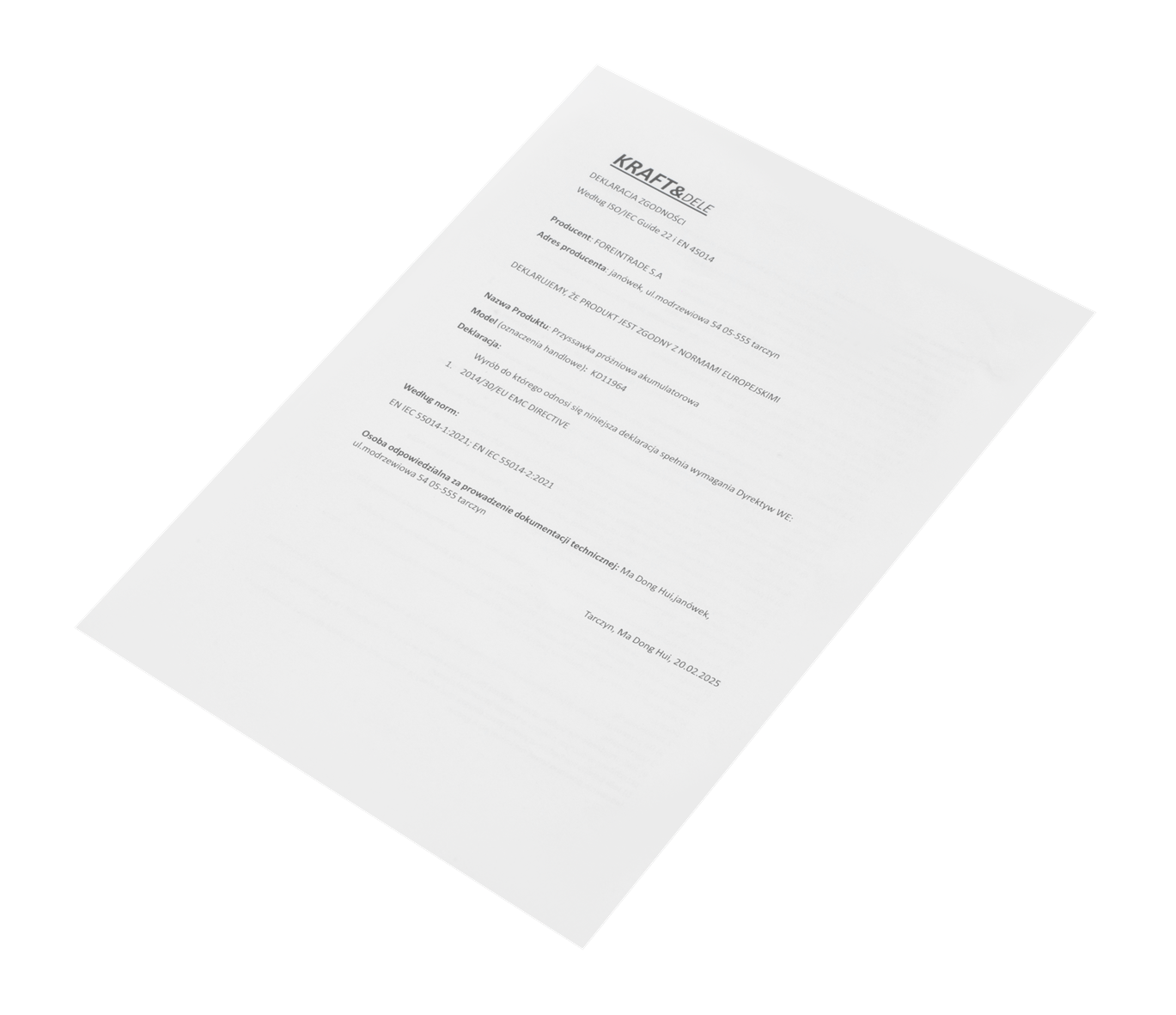 | Zawartość zestawu | Przyssawka, kabel USB-C, instrukcja obsługi (PL) |