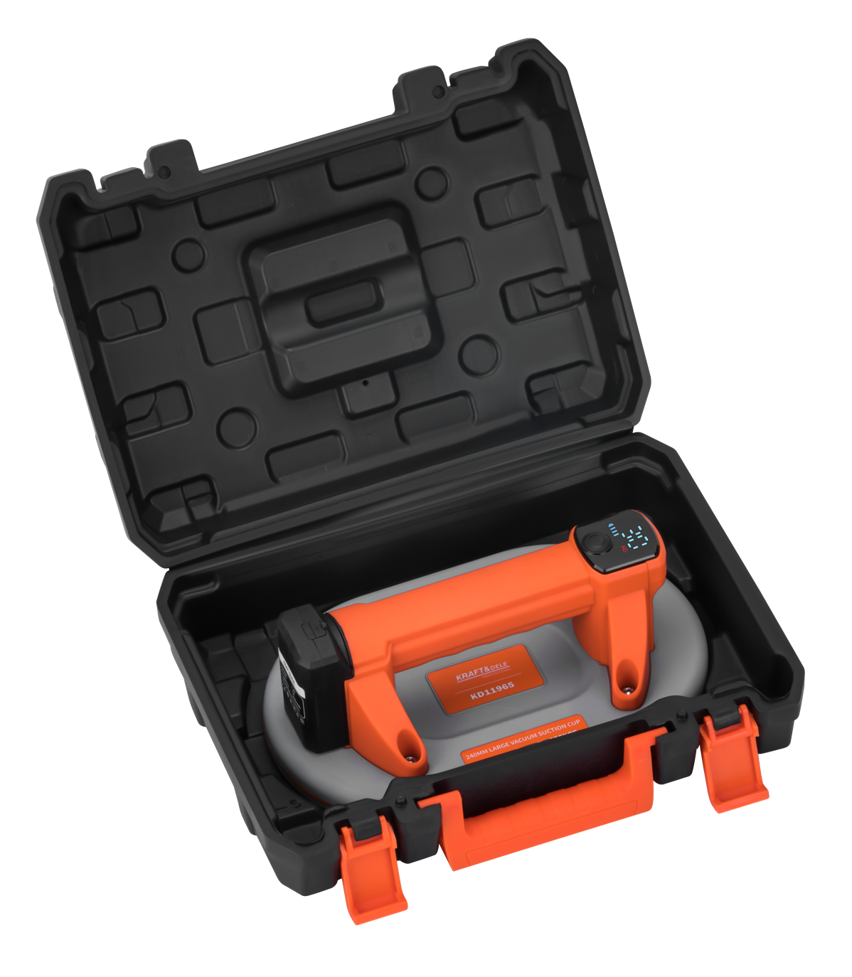 KD11965 to akumulatorowa przyssawka przemysłowa przeznaczona do bezpiecznego przenoszenia ciężkich elementów o gładkich powierzchniach — szkła, płyt kamiennych, arkuszy metalowych i podobnych materiałów. Zasilanie bateryjne eliminuje zależność od gniazdka elektrycznego, co umożliwia swobodną pracę w różnych lokalizacjach budowy lub warsztatu.