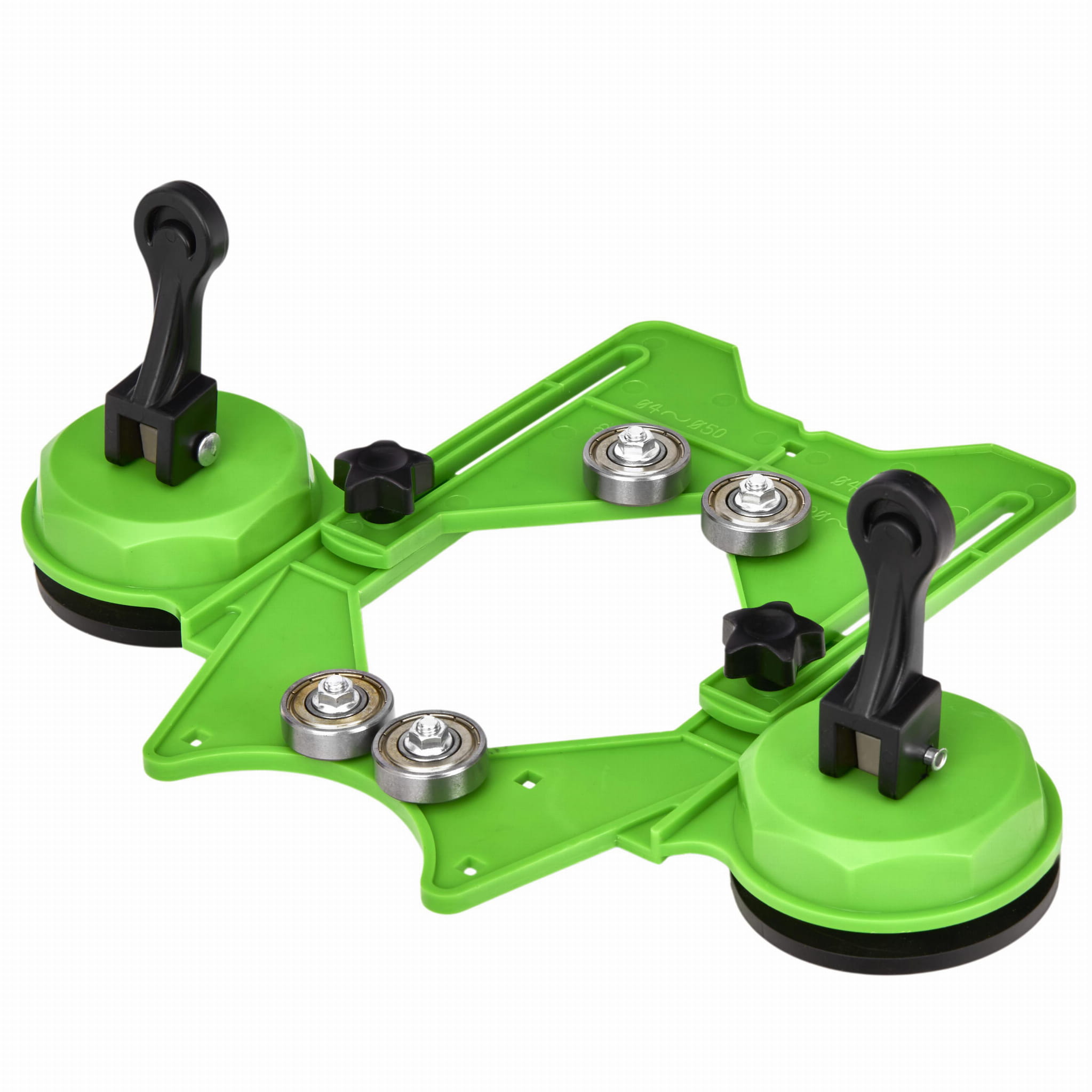 Przyssawka próżniowa wytwarza podciśnienie między podstawą a powierzchnią materiału. Efekt ten zapewnia stabilne osadzenie prowadnicy bez użycia dodatkowych uchwytów czy zacisków — wystarczy docisnąć i aktywować mechanizm blokady.