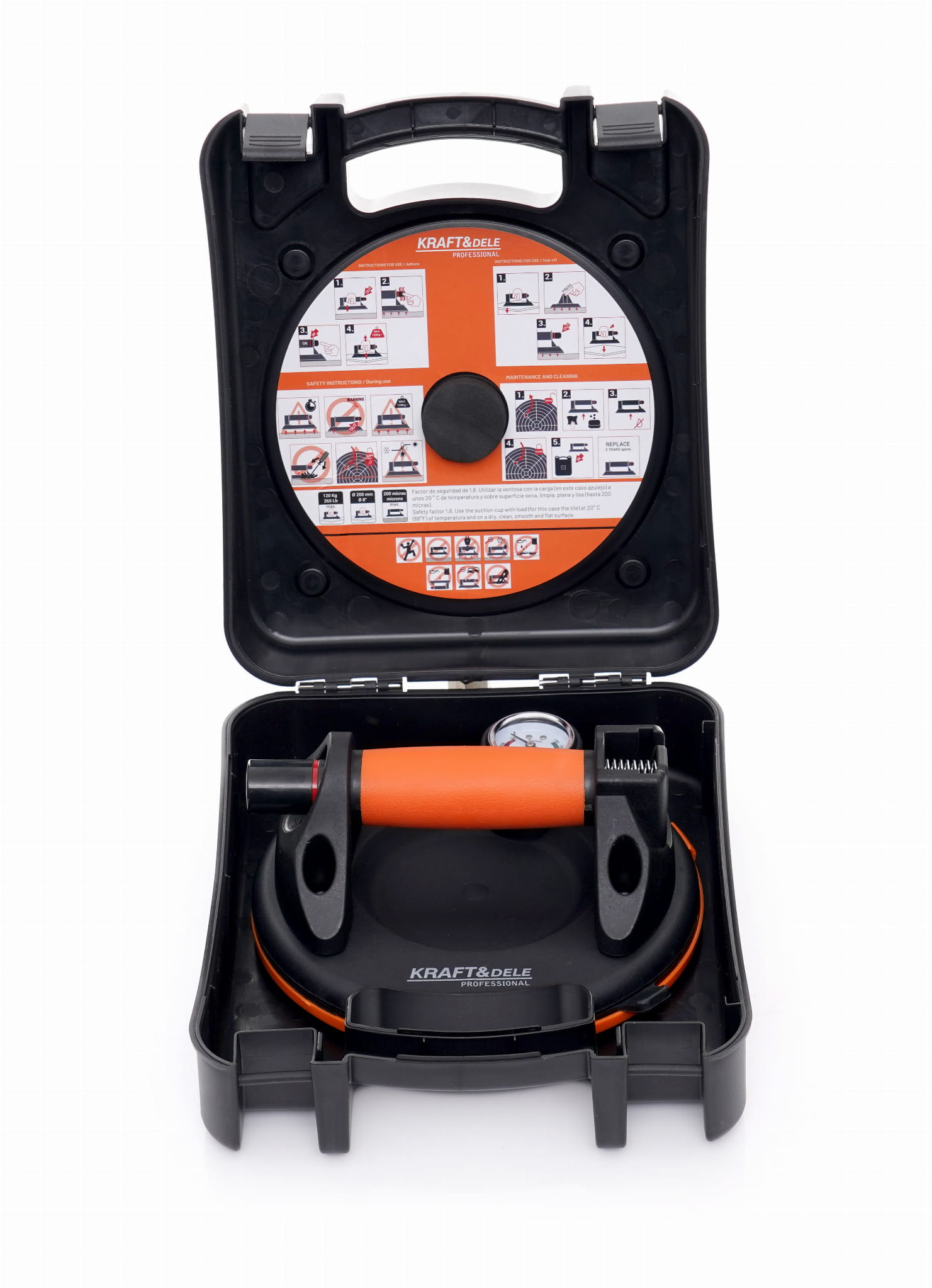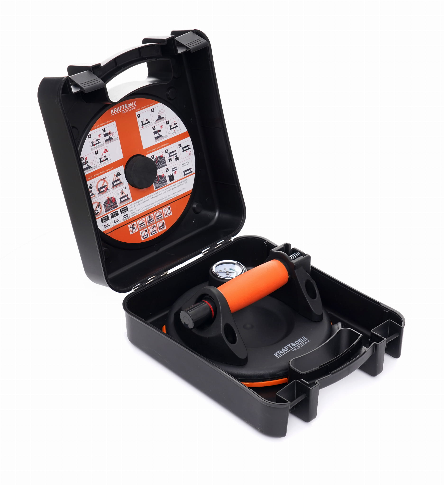 Przyssawka dostarczana jest w zamykanej walizce transportowej, która ułatwia przechowywanie i transport na plac budowy lub do warsztatu, a także chroni gumowy element przed uszkodzeniem i zabrudzeniem podczas magazynowania.