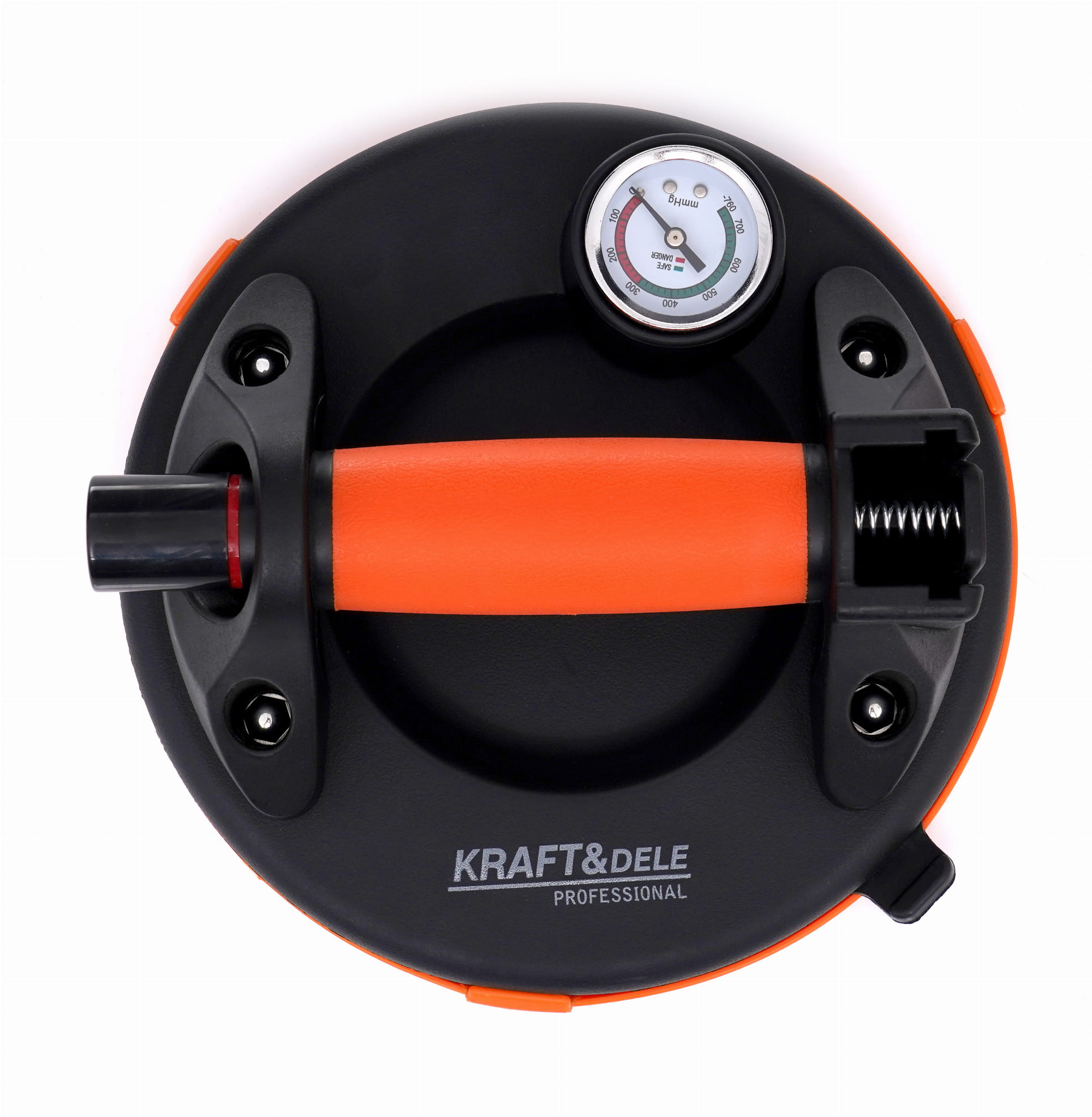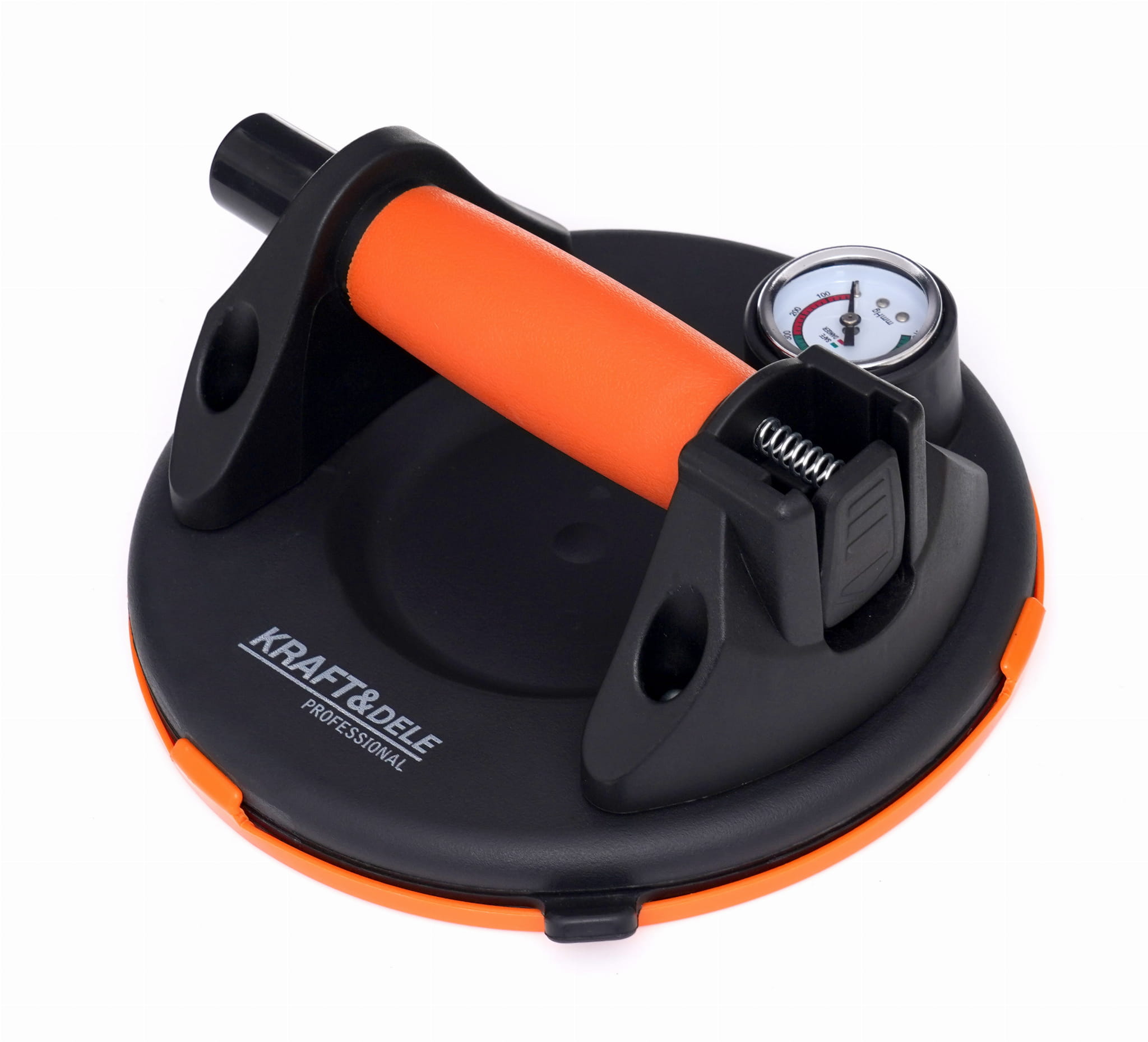 Jednoczęściowa przyssawka próżniowa z pompką i zaciskiem mimośrodowym, przeznaczona do przenoszenia płaskich elementów o gładkiej powierzchni — szyb, blach, laminatów i podobnych materiałów o masie do 190 kg. Aluminiowy korpus z gumową przyssawką o średnicy 200 mm zapewnia stabilny chwyt podczas prac montażowych i transportowych.