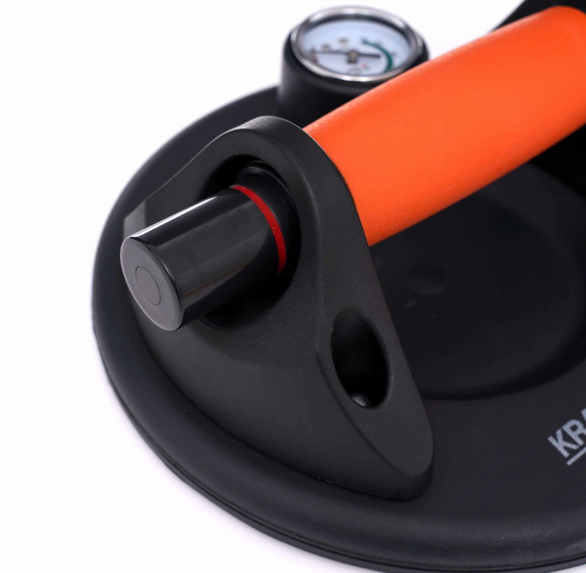 Zintegrowana pompka ręczna pozwala na wytworzenie podciśnienia bezpośrednio przed podniesieniem elementu, co zwiększa siłę chwytu w porównaniu z przyssawkami bez pompki. Przycisk szybkiego zwalniania umożliwia kontrolowane odłączenie przyssawki bez szarpania przenoszonego materiału.