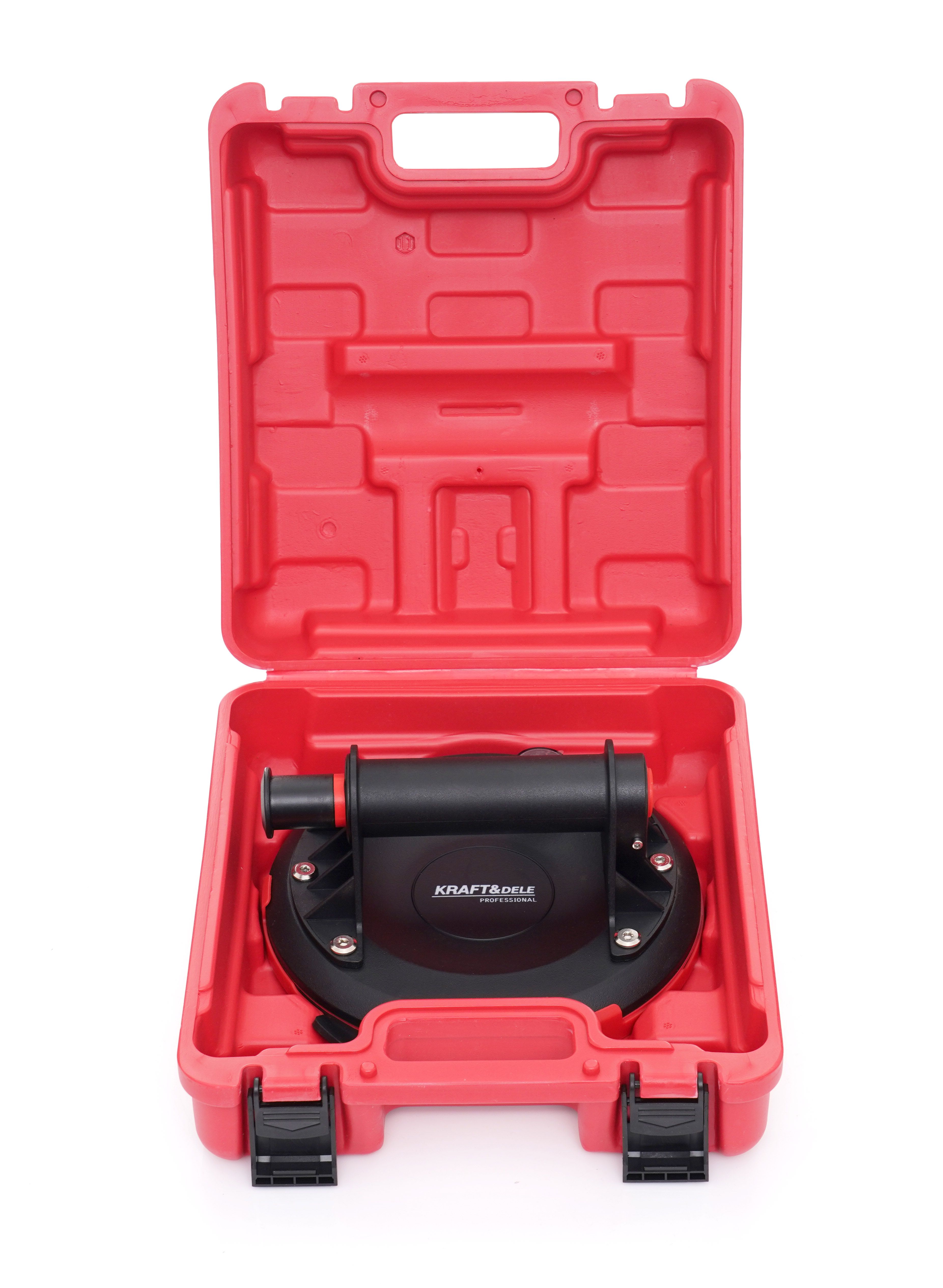 Przyssawka próżniowa Kraft&Dele KD10793 to praktyczne narzędzie do bezpiecznego przenoszenia elementów o gładkiej powierzchni. Pompka próżniowa wzmacnia chwyt, a przycisk szybkiego zwalniania ułatwia pracę przy częstym odkładaniu i podnoszeniu.