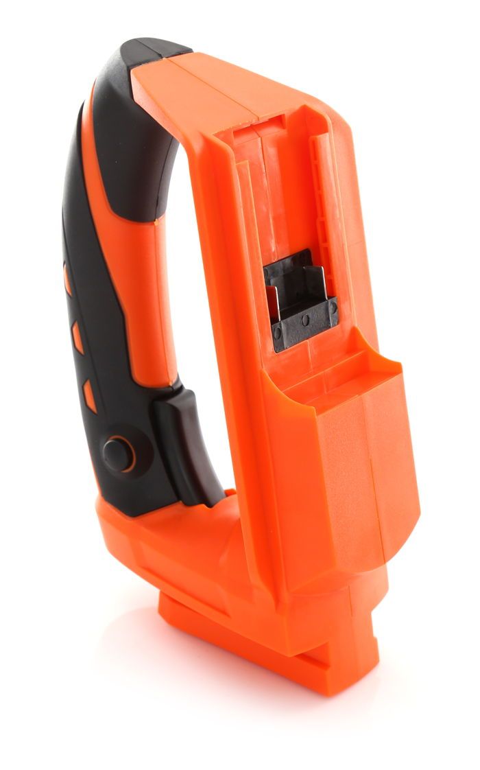 Korpus z tworzywa sztucznego utrzymuje niską wagę elementu, jednocześnie zapewniając odporność na typowe obciążenia mechaniczne występujące podczas użytkowania narzędzi ogrodowych i tnących.