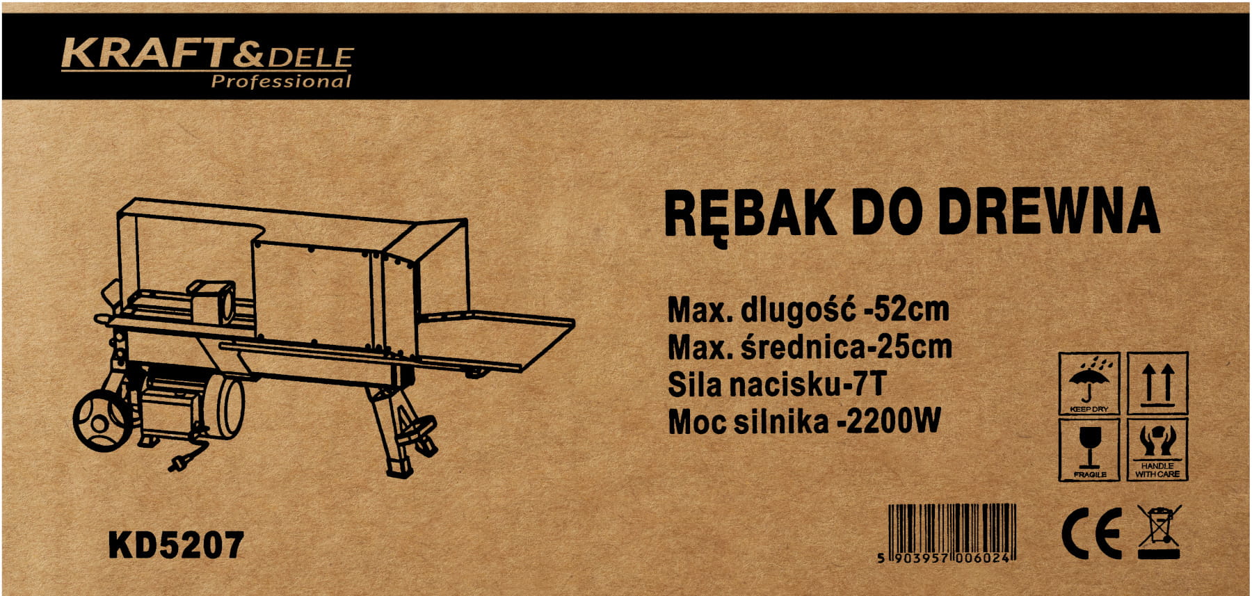 KD5207 to elektryczna łuparka do drewna z hydraulicznym systemem klinowym, przeznaczona do użytku domowego i przydomowego. Urządzenie pracuje w pozycji poziomej, co zapewnia stabilność podczas pracy i umożliwia obsługę przez osoby o różnym wzroście.